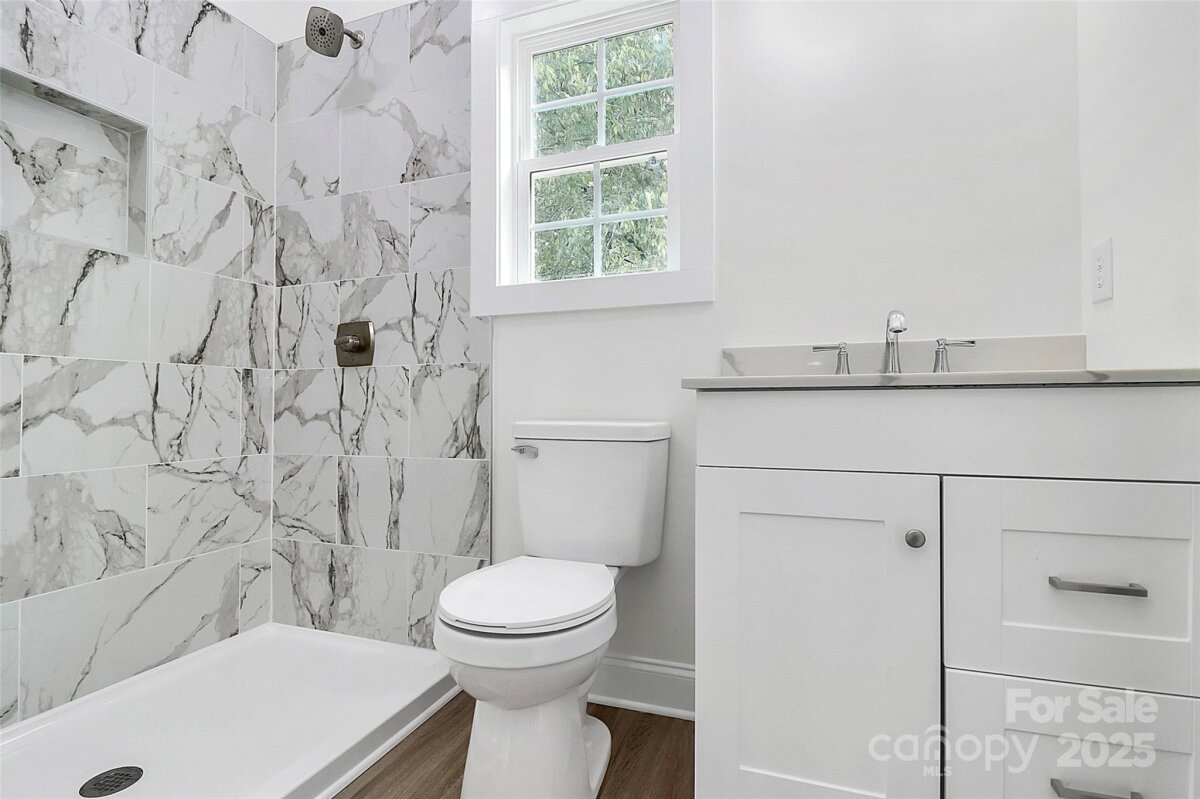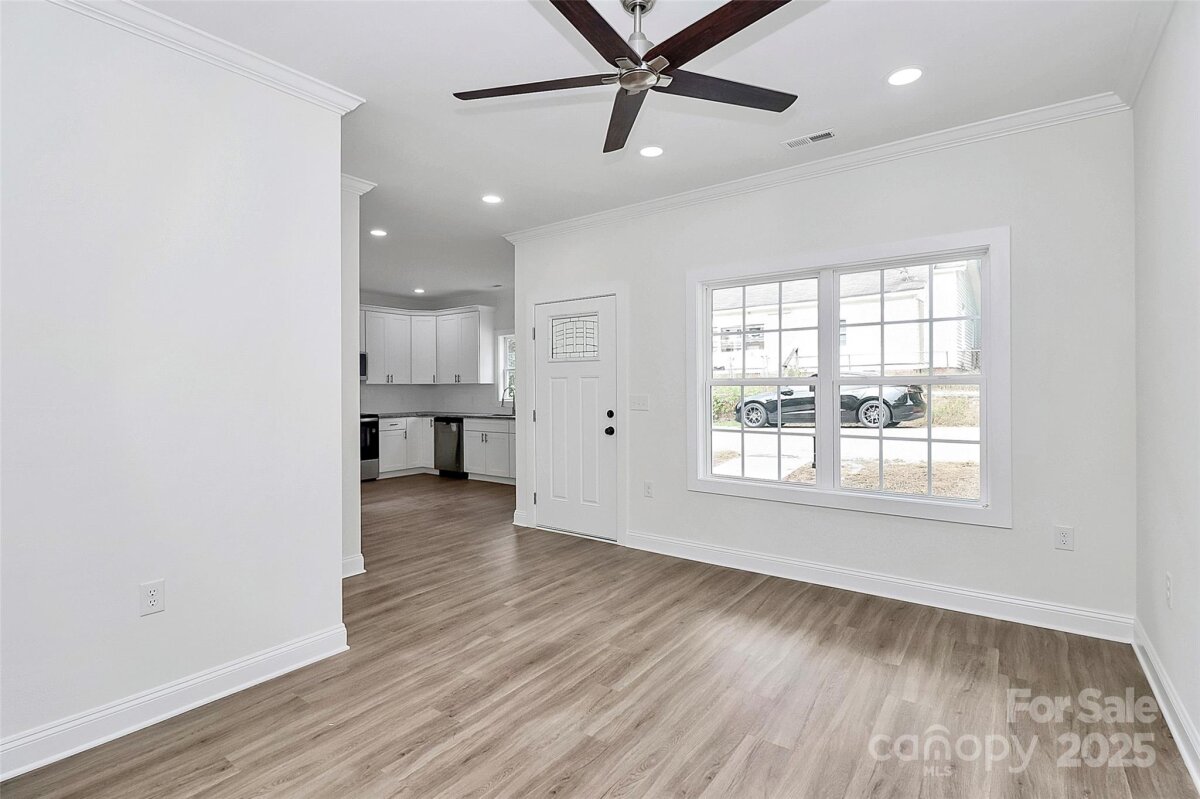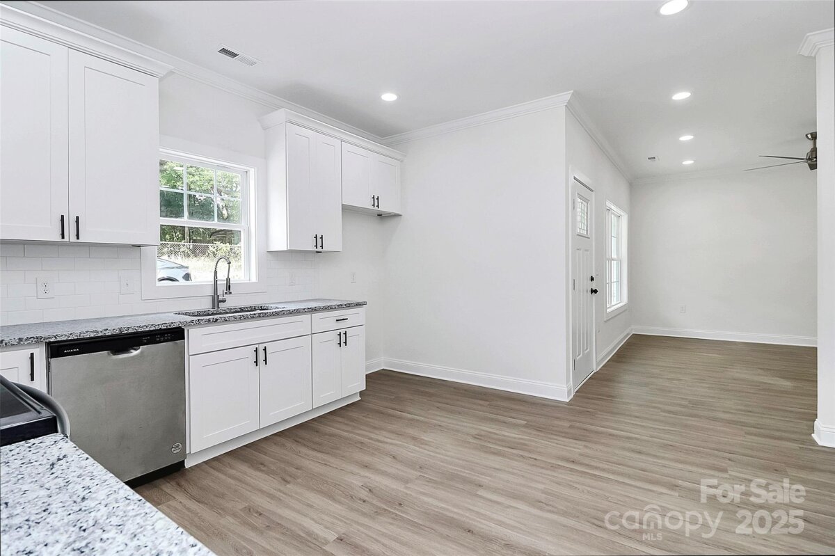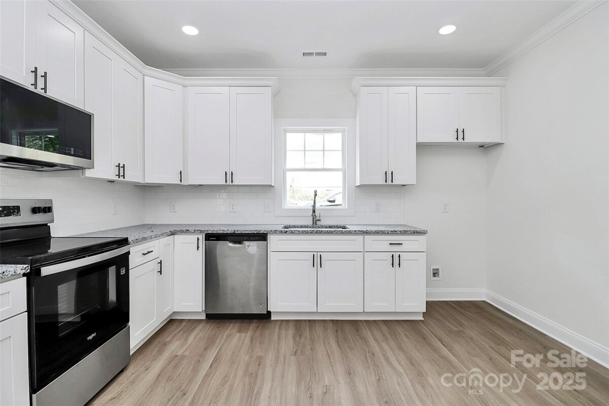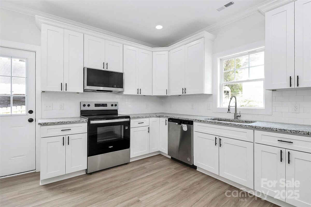 All NEW renovations with this 3 bedroom/2 bathroom home. Laminate gray floors throughout. New windows, plumbing, roof, HVAC, lighting, water heater and wiring. Kitchen features white 42†cabinets w/ soft close, granite c-tops, SS appliances and tile b-splash. Crown molding and recessed lighting throughout. Ceiling fans in living room and all bedrooms. Owner’s suite with walk-in closet. Polished black fixtures and all new doors. Maintenance free vinyl and shake with brick wall accent. Rocking chair front porch and new partially fenced in yard.