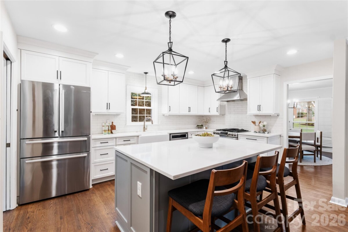 Welcome to this stunning 4-bedroom, 2-bath home located at the end of a quiet cul-de-sac in one of Charlotte’s most desirable neighborhoods, Sherwood Forest. Every inch of this home has been thoughtfully updated while maintaining its traditional warmth. Enjoy rich hardwood floors throughout and a bright, open layout perfect for modern living. The renovated kitchen (2021) features a massive island with quartz countertops, updated cabinetry, and an open flow to the living and sunroom spaces—ideal for entertaining. The sunroom showcases custom cabinetry (2022) and abundant natural light. The home also includes a secondary bath remodel (2022) and a primary bath renovation (2023), as well as all new ductwork (2022), windows, and light fixtures throughout. Additional highlights include a charming laundry room with butcher block counter and pocket door, a freshly painted exterior (2021), and a nearly half-acre, completely fenced lot offering privacy and room to enjoy the outdoors. Move right in and experience the perfect blend of timeless character and modern updates in the heart of Sherwood Forest—just minutes from Cotswold, SouthPark, and Uptown Charlotte.