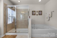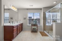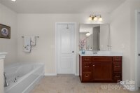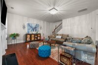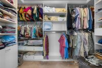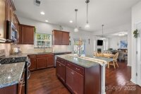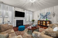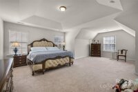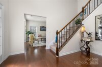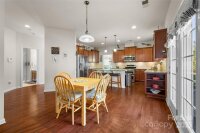 Just 3 minutes from shopping, dining & access to 485, this meticulously maintained home invites you into the front door with a glorious chandelier & richly colored engineered hardwood floors throughout the main level. Spacious Living & Dining rooms with 2 bay windows, wainscoting and trey ceiling over formal dining area. Kitchen w gigantic island, travertine backsplash, under cabinet & pendant lighting, stainless steel Frigidaire Gallery appliances, double oven & gas cooktop overlooks the enlarged patio through sliding glass doors and is open to Breakfast area and Family room. Family room has a gas fireplace and elegant light fixture. Bedroom on the main has gigantic arched window and attached Full Bath, perfect for multi-generational living. Up one of the two staircases with wrought iron spindles are 4 bedrooms & a bonus room that could be used as a bedroom. Every bedroom as well as the bedroom/bonus is connected to a full bath. Enormous Primary Suite has vaulted ceiling, sitting area, walk in closet w custom organized closet system, garden tub and his & her vanities w sink. 2 car garage has abundant cabinetry for storage. New upstairs HVAC in 2023. Security System. Take the sidewalk lined streets to the neighborhood pool and playground or catch a volleyball game on the sand courts. Located in the Hickory Ridge cluster of schools. OPEN HOUSE SATURDAY,11/22 1-3