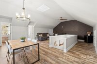 Beautifully updated and thoughtfully designed, this three-story Mint Hill home blends exceptional space and modern comfort on a large, fully fenced lot—a rare opportunity with no HOA. The main level features a full bedroom and full bathroom, ideal for guests or multigenerational living. Light-filled living spaces are enhanced by hardwood floors, crown molding, custom lighting, and a neutral designer palette, creating a warm, polished feel throughout. At the heart of the home, the updated kitchen impresses with neautral cabinetry, granite countertops, stainless steel appliances, a large center island, and generous storage, all flowing seamlessly into the surrounding living and dining areas—perfect for both everyday living and entertaining. A separate wet bar allows for effortless entertaining and extra cabinet space. The second floor hosts four bedrooms, including three spacious secondary bedrooms and a serene primary suite with a beautifully upgraded ensuite bathroom and private sitting area. The primary bath features dual vanities, a soaking tub, and a separate shower, while the additional full bathroom serving the secondary bedrooms has also been tastefully updated with modern finishes. There is an abundance of storage space in with walkin attic area and large laundry room. The third-floor loft provides a flexible bonus space—ideal for a media room, home office, playroom, or workout area. Outdoor living truly shines with a screened porch and low-maintenance Trex deck, overlooking the private, fully fenced backyard. A separate fire pit area creates an inviting setting for relaxing or entertaining, while a full-lot electronic dog fence adds everyday convenience. 2 car oversized garage includes a dedicated workshop space. Additional upgrades include a fully encapsulated crawl space with dedicated dehumidifier, expanded driveway with a designated trash enclosure, a tankless hot water heater, and two replaced HVAC systems, offering efficiency, comfort, and peace of mind. With a stunning kitchen, upgraded bathrooms, custom lighting, quality finishes throughout, and extensive systems and outdoor improvements, this move-in-ready home offers the perfect balance of style, function, and modern living in a desirable Mint Hill location close to shopping, dining, and parks. An exceptional opportunity to own a beautifully updated home designed for comfort, flexibility, and effortless entertaining.