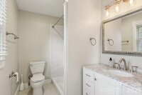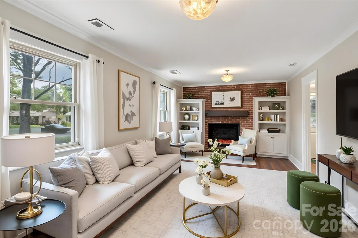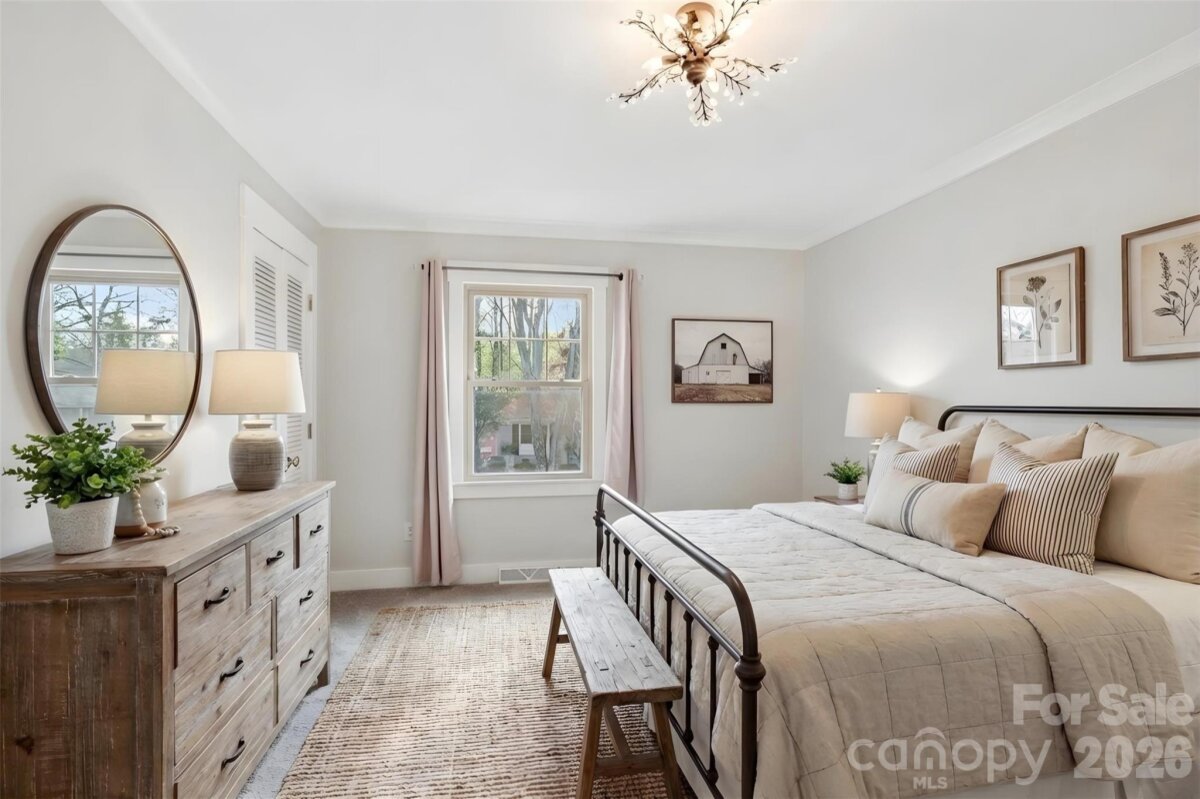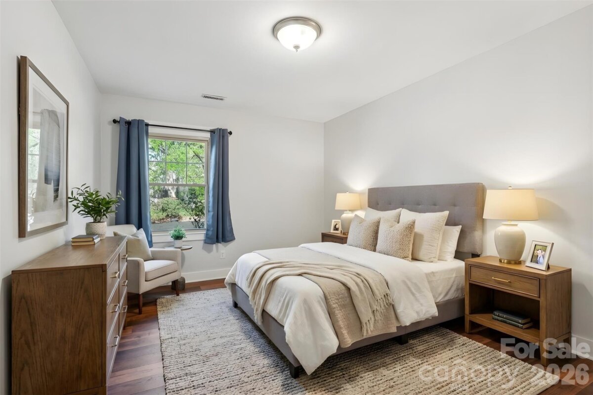 Poised on a generously sized corner lot, this well-maintained 4-bedroom home in established Coventry Woods offers a functional layout and beautiful updates throughout. Warm hardwoods greet you on the main level, where a bright living room flows into the dining area and a recently remodeled kitchen featuring designer finishes. Upstairs, the primary suite includes its own en-suite bath, while two additional bedrooms share a well-appointed full hall bath. The lower level provides exceptional flex space with an expansive second living area anchored by a charming brick fireplace, a dedicated laundry area, and a private bedroom with its own full bath—ideal for guests, multigenerational living, or a quiet home office. Outside, cheerful landscaping frames the home, and the backyard includes both a tidy utility closet and a large storage shed for added convenience. Thoughtfully updated and set in a peaceful East Charlotte location, this home offers style, character, and everyday practicality. Come see it for yourself!