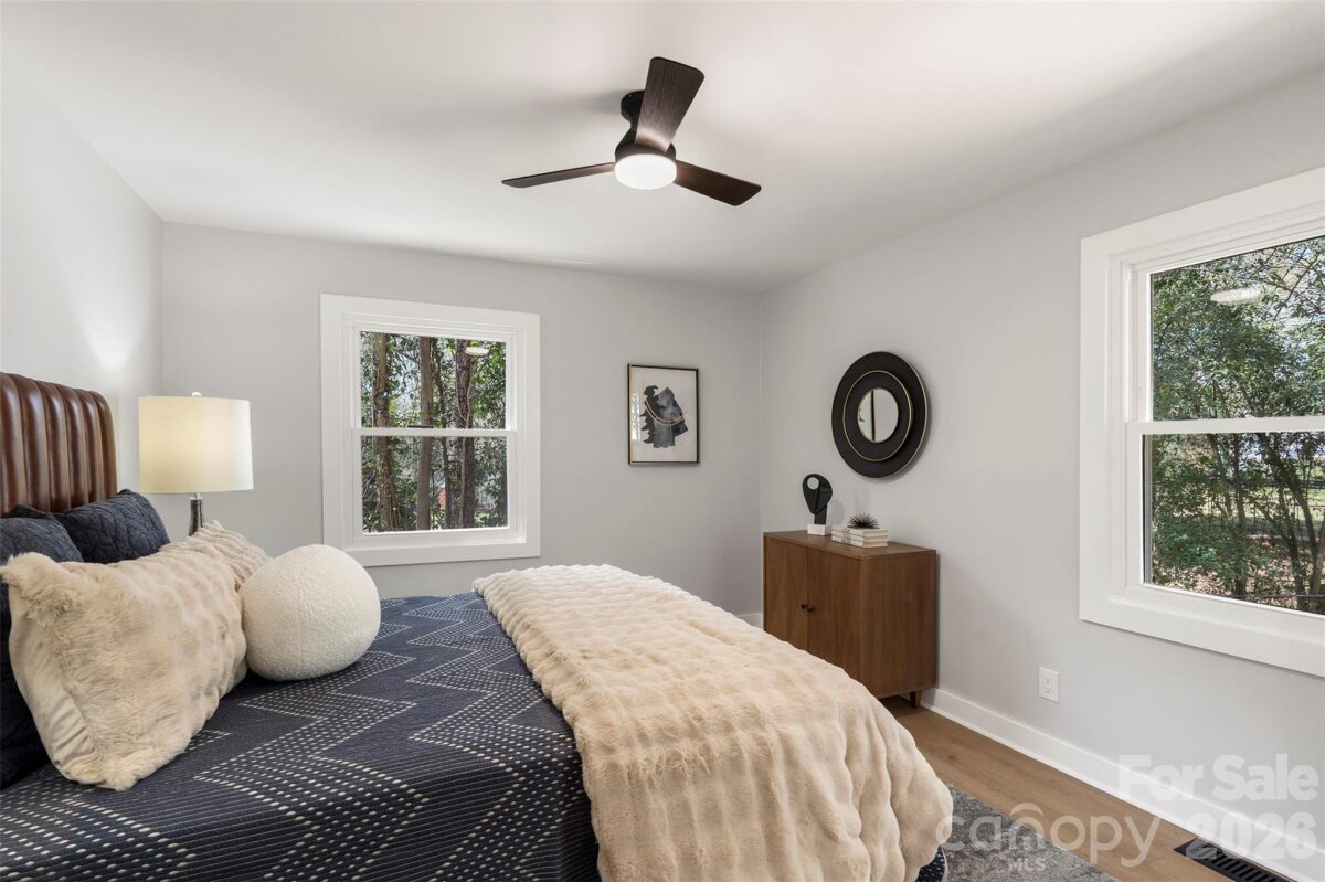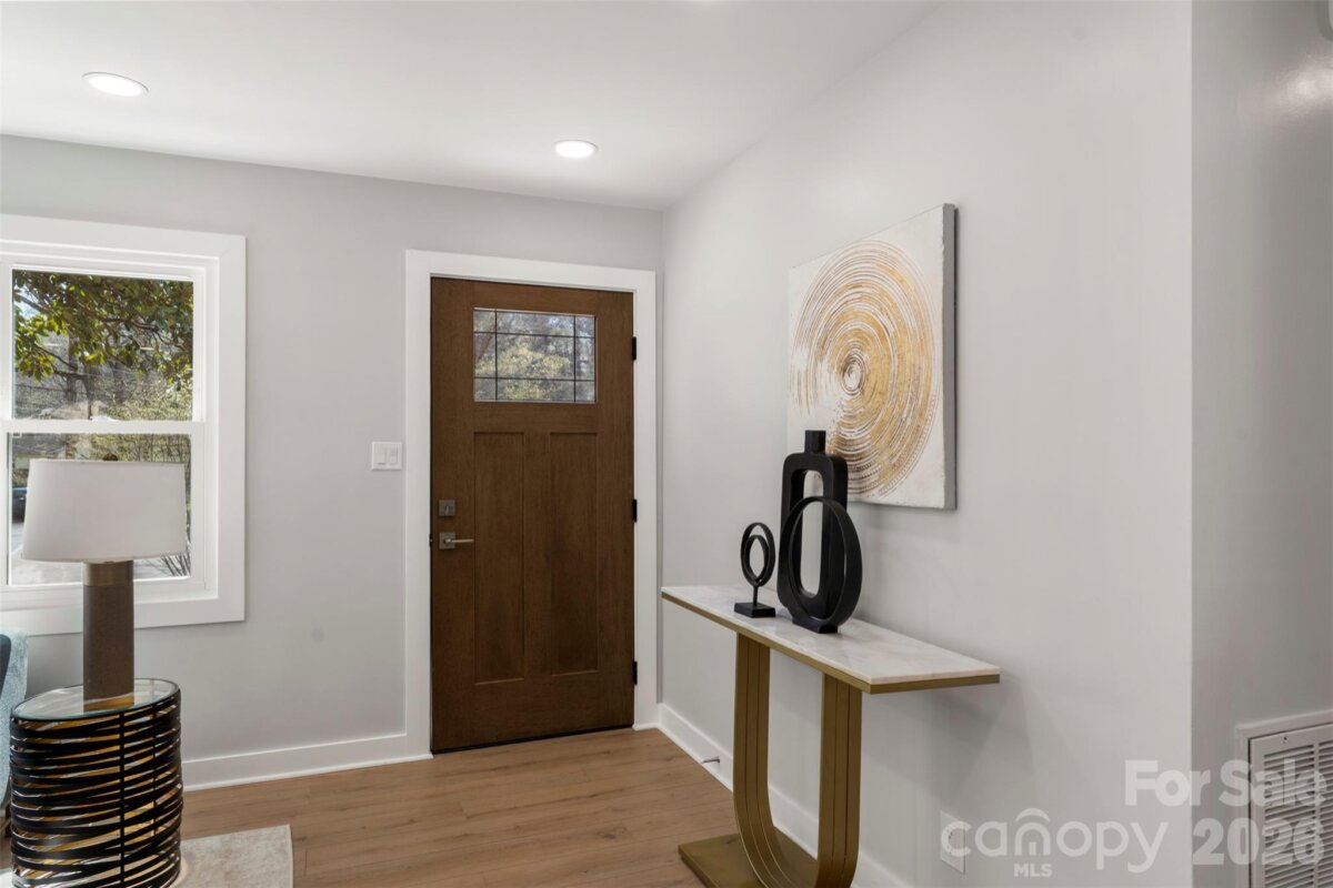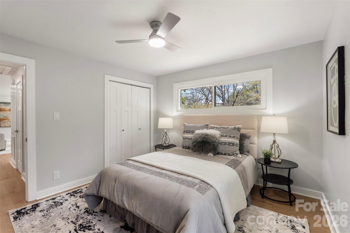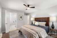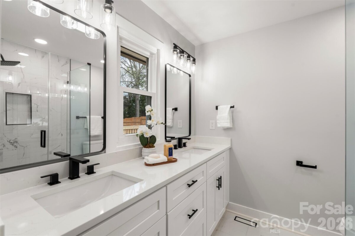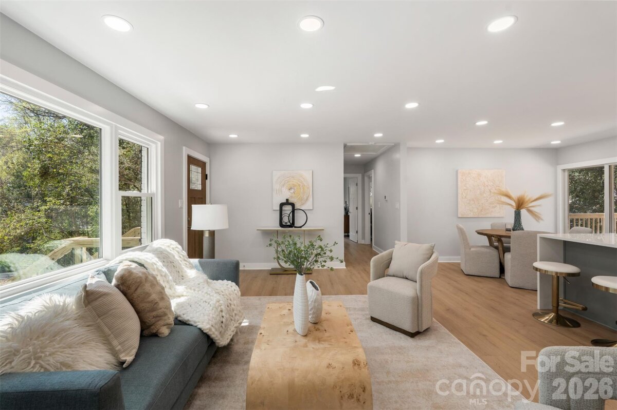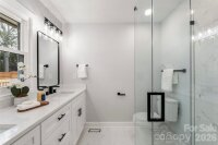 Welcome to this beautifully reimagined ranch-style home, thoughtfully renovated with elevated finishes and modern design throughout. Situated on a spacious corner lot in an established, tree-lined neighborhood, this home blends charm with contemporary living in a highly desirable Charlotte location. Step inside to an open, light-filled layout featuring luxury LVP flooring throughout and a seamless flow between living, dining, and kitchen spaces perfect for both everyday living and entertaining. Expansive windows fill the home with natural light, creating a warm and inviting atmosphere. The designer kitchen is the heart of the home, showcasing brand new cabinetry with custom trim, a stunning waterfall-edge island, stylish tile backsplash, stainless steel appliances, and a farmhouse sink. Enjoy outdoor living on the newly built deck overlooking a private backyard, along with a storage shed for added convenience. A covered carport and extended driveway provide ample parking. Located just minutes from Uptown, shopping, dining, and major highways, this move-in-ready home offers the perfect balance of style, comfort, and location.
