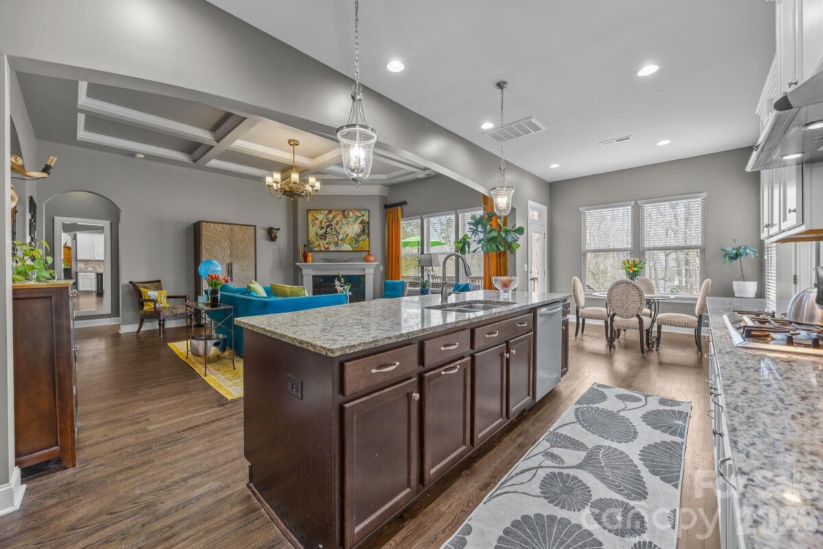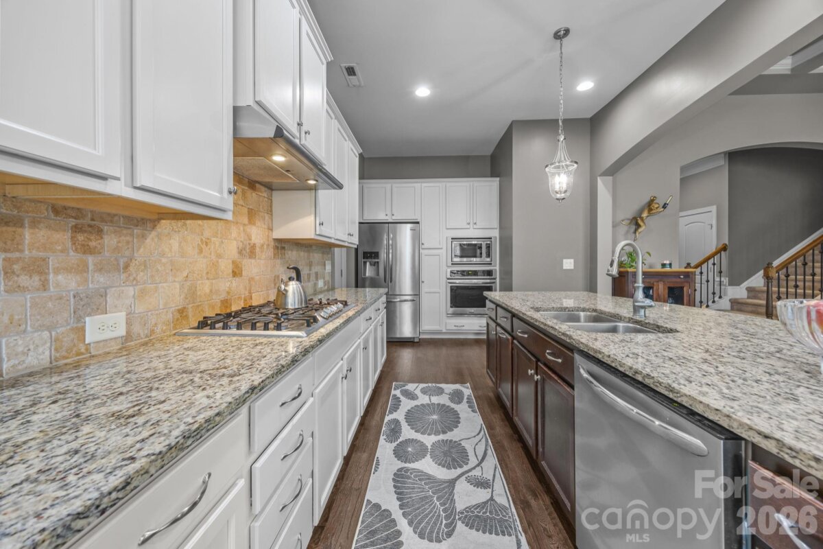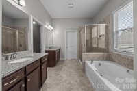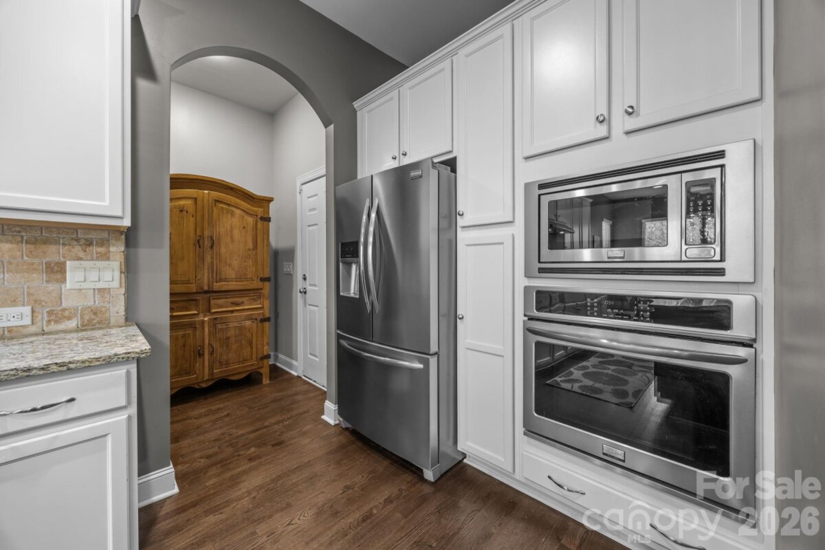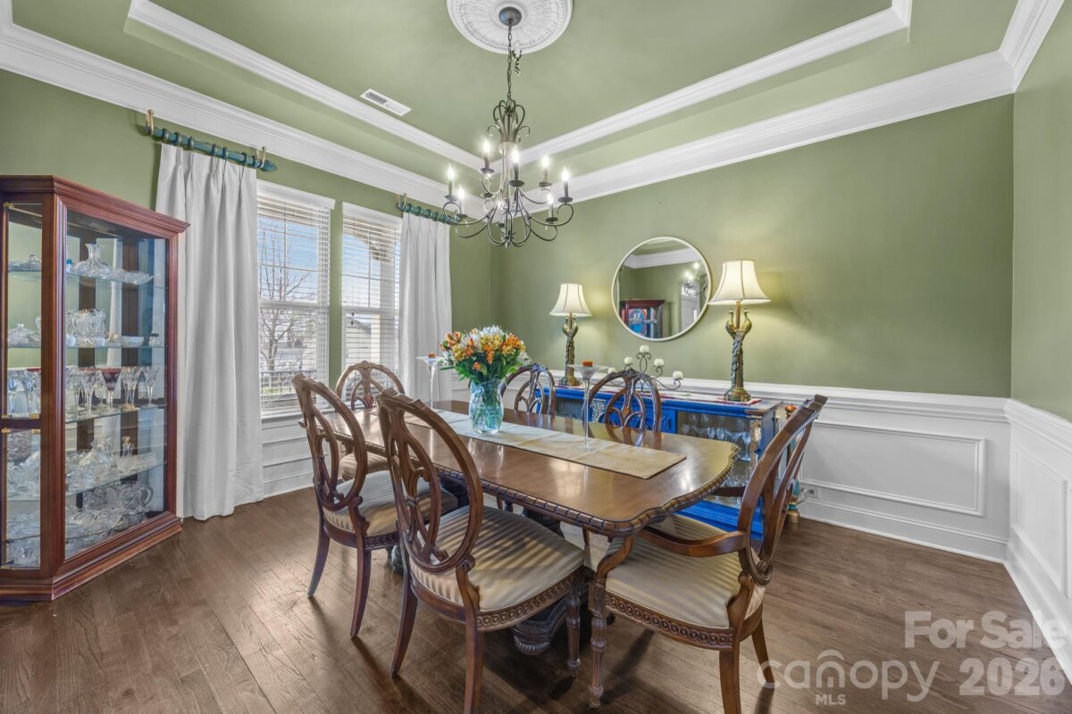 Stunning Arts & Crafts Style Home built by Bonterra Builders! Quality craftsmanship shines with heavy moldings and red oak hardwood floors throughout the main level. The spacious primary suite features a bay window sitting area, tray ceiling, and a luxurious bath with soaking tub and separate shower. The gourmet kitchen boasts granite countertops, Frigidaire Appliances, a large island, and walk-in pantry, opening to the family room and breakfast area with views of the scenic backyard. There is a soothing gas fireplace for your enjoyment. Upstairs offers 3 bedrooms plus a huge bonus room that can easily be used as a FIFTH bedroom (if needed)—perfect for work or play. There is plenty of extra storage space with two walk-in attics off of the bonus room and 3rd bedroom. Outdoor living is unmatched: enjoy the expanded deck, custom putting green, and massive paver patio with circular sitting area and firepit. Entertain at the outdoor bar, relax in the hot tub, and stroll the paver walkways framed by extensive landscaping. The backyard is completely fenced in. Energy Star Certified home with new HVAC systems, including a furnace and air conditioner installed in 2024, adding value and reliability. HOA is $667 annually and includes access to a neighborhood pool and fishing pond for your enjoyment. Don't be fooled by the Midland address, the home is only 18 miles to Downtown Charlotte's Spectrum Center! This home blends elegance, comfort, and resort-style amenities—ready for you to move in and enjoy!