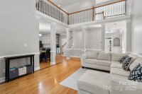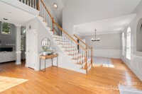 This elegant residence welcomes you with an impressive open floor plan and thoughtful architectural details, blending comfort and sophistication. The heart of the home is bright and spacious, with neutral gray walls and striking hardwood floors featuring a refined inlaid border, infusing character while maintaining a modern aesthetic. Upon entering, a dramatic foyer with soaring ceilings, expansive windows, and decorative alcoves sets the tone for the entire home to be airy. Natural light streams in, highlighting the staircase’s classic design of white balusters and oak rails that sweep gracefully to the upper level. Architectural columns and symmetry in the main living space create a stately, inviting atmosphere. The living room offers a tranquil retreat centered around a beautiful fireplace, flanked by tall windows that frame serene views of the surrounding landscape. White wainscoting and crown molding add distinction, balancing traditional craftsmanship with contemporary appeal. This area seamlessly transitions into both formal and informal dining spaces, making it perfect for entertaining or everyday family gatherings. A chef-inspired kitchen stands as the home’s functional focal point, equipped with ample cabinetry in soft gray tones, expansive granite countertops, and top-of-the-line stainless steel appliances. The central island provides generous workspace and storage, ideal for both culinary creativity and casual seating. Sunlit breakfast and dining areas increase versatility, and glass doors offer easy access to outdoor spaces. Throughout the main level, the transition between rooms is smooth and open, utilizing floor-to-ceiling windows and consistent trim details to achieve a cohesive look. Softer shades keep the entire home light and welcoming, while crisp white woodwork adds subtle elegance to every room. Approximately 500 square feet of unfinished attic space, offering tremendous potential for storage, future expansion, or creative use. The attic is easily accessible and ready for customization—whether as a dedicated studio, playroom, home office, or deluxe storage area. Its unfinished status means you can tailor the space to your specific needs and vision, adding significant value and flexibility to the property.