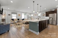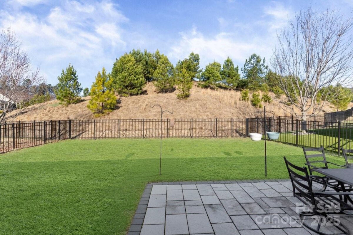 Enjoy the long range and grassy knoll views from this premium pie shaped lot for added privacy. Well maintained, open concept multi use Affirm floor plan features an amazing kitchen with abundant storage and counter space, refrigerator, gas range, tile back splash, under cabinet lighting and huge island complete with Quartz counter tops. Adjacent dining area for large gatherings flows thru the sliding wall of glass to the covered screened Lanai (w/built in speakers) that has an extended paver patio plus a fenced yard for added entertaining options. Great room is highlighted with a gas log fireplace, built in speakers, recessed and designer lighting. Grand primary bedroom and en-suite bath with dual sink vanity, tiled shower and walk in closet. Added bonus: office/den flex room offers imaginative use of the space for your creative endeavors. Additional guest bedroom with central bath. Custom blinds throughout. 2 car garage with extensive storage shelving for all those mementos you just can't part with. Access to Trilogy walking trail system just across the street. Trilogy Membership include Freedom Boat Club on Lake Norman plus award winning amenities