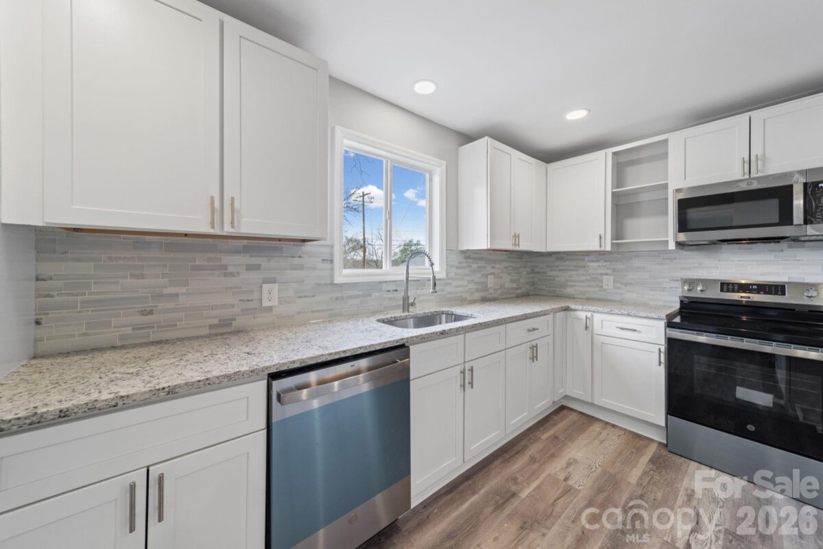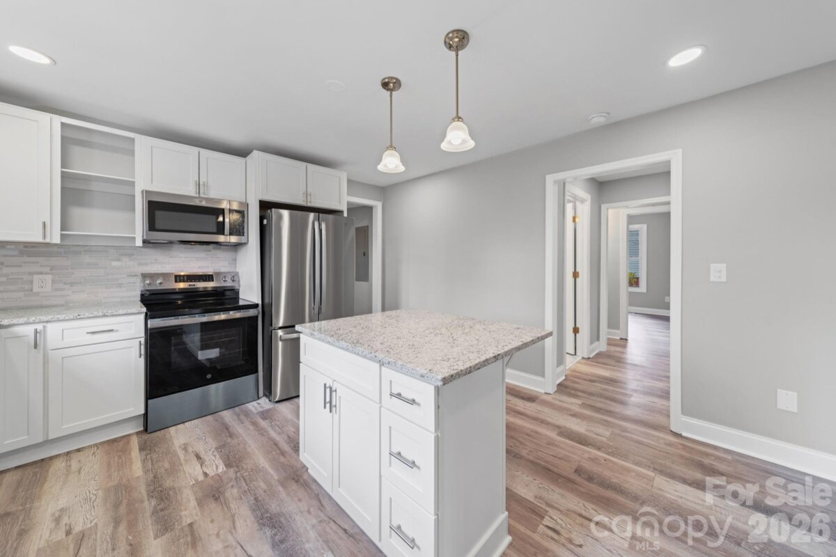 Just 1 mile from Downtown Mount Holly, this fully renovated 3BR/2BA Bungalow blends historic character with modern systems and finishes, offering 1,355 heated sq ft of open-concept living. Interior upgrades include new LVP flooring throughout, all new windows, updated plumbing and electrical, and a completely redesigned kitchen featuring white shaker cabinetry, granite countertops, stainless steel appliances, tile backsplash, and center island. Both bathrooms have been fully renovated with contemporary finishes. Dedicated laundry room located at rear of home with new Samsung washer/dryer. Exterior improvements include a new concrete driveway (approx. 40’ deep x 14’ wide), new sidewalk, new culvert, fresh exterior paint, new insulation and gravel in crawlspace, and rear deck/stairs. Metal roof has been repainted. Situated on a .15 acre lot with no HOA and convenient access to I-85, I-485, Charlotte Douglas International Airport, schools, and the US Whitewater Center. Ideal for owner-occupants or investors seeking Short-, Mid-, or Long-term rental potential. Move-in ready and designed for low-maintenance living!