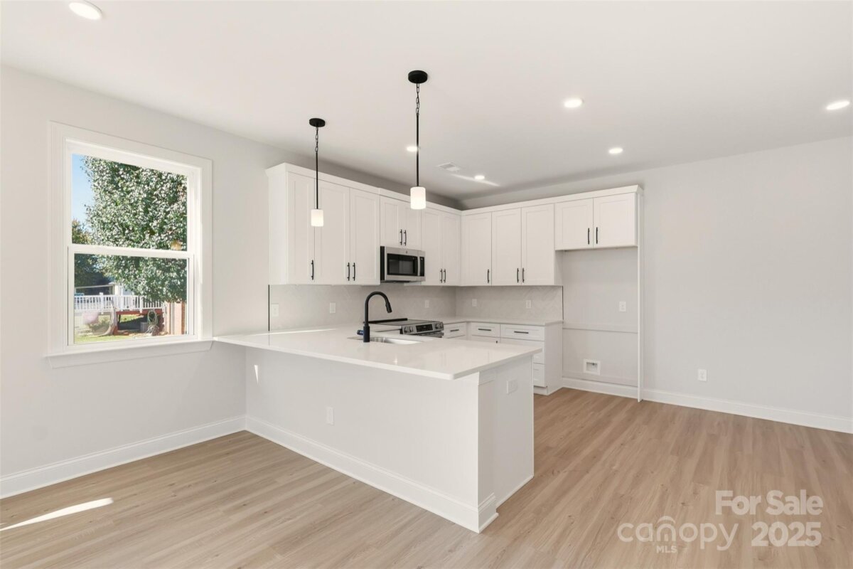 Nothing compares to "brand-new!" This new construction ONE LEVEL 4-bedroom, 2-bathroom offers a light-filled open floor-plan with beautiful neutral finishes, esthetically pleasing to the eye. You'll love to cook in your new kitchen, featuring sleek quartz countertops, a spacious island, and top-of-the-line stainless steel appliances. The primary bedroom is large with a private ensuite bathroom and walk-in closet. High ceilings flow throughout. Elegant vinyl-plank flooring and comfy carpeting in the bedrooms creates an inviting and airy atmosphere. The location is ideal, being close to downtown and amenities in an adorable established neighborhood. Experience the best of new construction with this pristine, move-in-ready home. Add some landscaping to make it yours. Come tour today-your new home awaits!