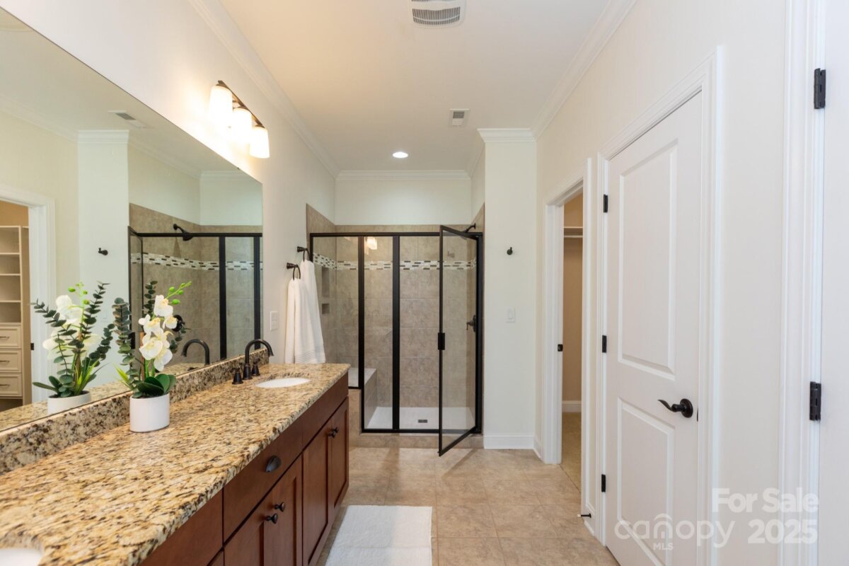 Lightly lived-in and beautifully upgraded, this home is in Trilogy Lake Norman, a premier gated 55-plus community. 5002 Looking Glass Trail sits on a premium lot backing to a wooded common area, offering privacy from your screened porch, paver patio with grilling station, and gas fire pit. Inside, you’ll find hardwood floors in the entertaining areas, fresh paint throughout, and a striking stacked-stone electric fireplace (TV above conveys). The kitchen features a gas range, vented microwave, under-cabinet lighting, soft-close cabinetry, and a spacious island with excellent prep space. A flex room, currently used as formal dining, complements a breakfast/lounge area. The light-filled primary suite is located at the back of the home, with a bath that includes a double vanity, shower with seat, separate water closet, and customized walk-in closet. Two additional bedrooms sit at the front with a shared bath. A laundry room with drop zone leads to an expanded two-car garage with storage racks. This residence offers easy living with front and side lawn maintenance covered by the HOA. Life in Trilogy feels like a year-round resort, centered around the Twin Mills Club and its incredible amenities. Welcome home!