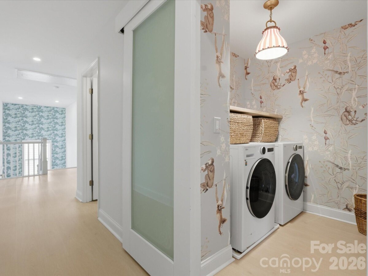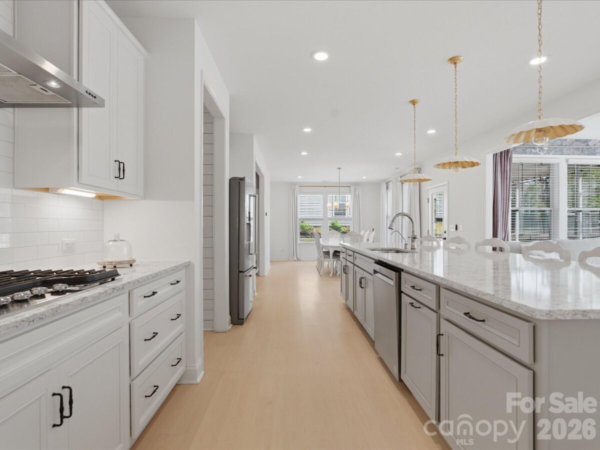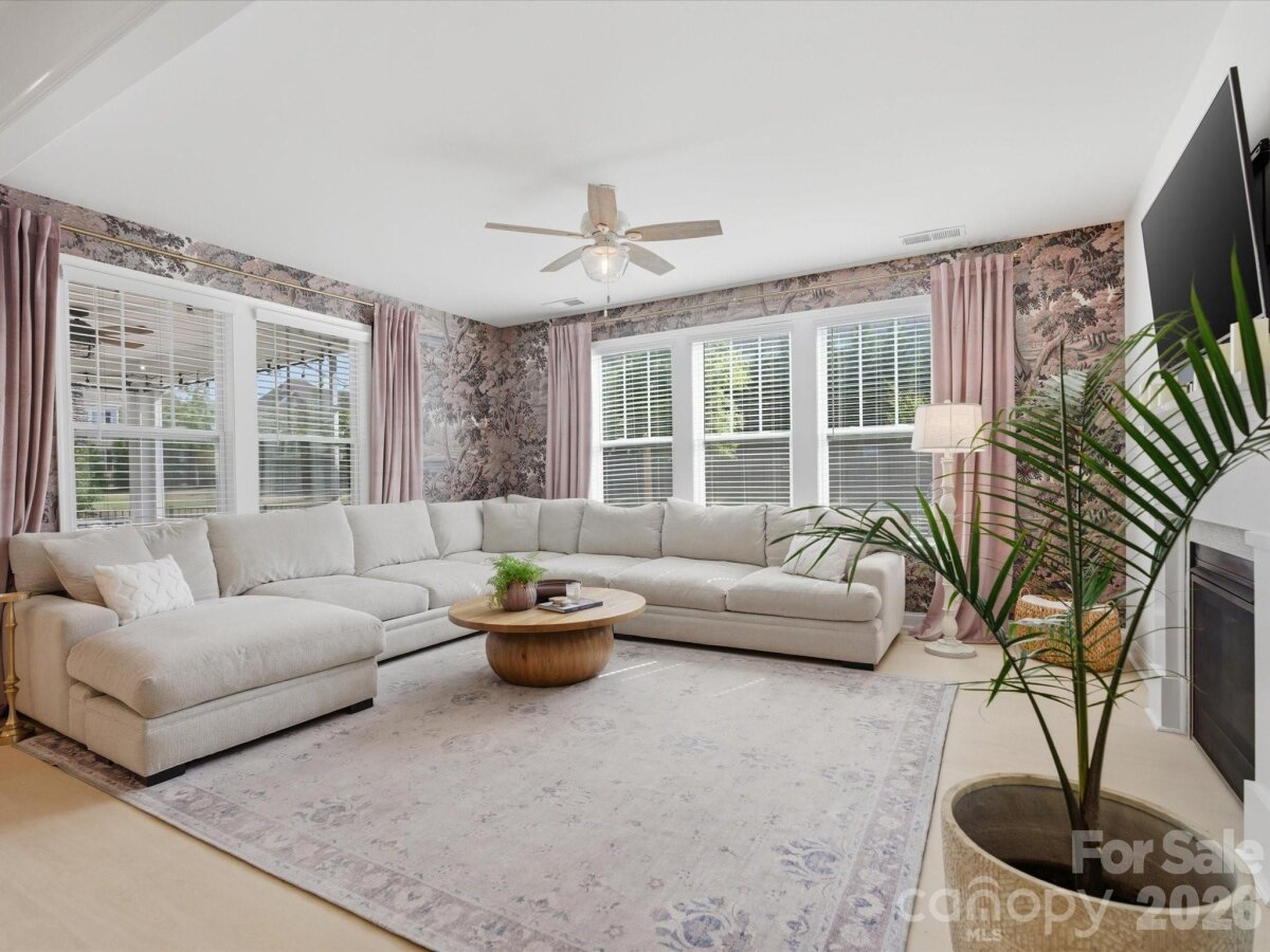 No, this is not a staged home. This is someone’s beautifully designed, thoughtfully upgraded home and it shows in every detail. Welcome to 5005 Millbridge Parkway, where the work has already been done for you and you can truly move right in. From the charming Southern front porch to the fresh, updated interior, this home immediately feels special. Inside, you’ll find brand new wide plank blonde LVP flooring throughout the main level, as well as in the upstairs primary suite and loft. Secondary bedrooms feature brand new carpet. A spacious and inviting office with an oversized storage closet sits just off the entry, along with a flexible sitting or dining room. The kitchen is the heart of the home, featuring a massive island that anchors the open layout, perfect for everyday living and entertaining. You’ll love the light, bright feel, along with soft close drawers, under cabinet lighting, a custom pantry, and a brand new dishwasher. The kitchen flows seamlessly into the dining area and family room, creating an easy and comfortable living space. A full guest suite on the main level. Upstairs offers a large loft, an oversized primary suite, and a spacious primary bath. The secondary bedrooms are generously sized and the updated secondary bath includes a new shower. Even the laundry room stands out with thoughtful design and a charming new door. Step outside to enjoy the screened porch, fire pit, and seating area, all overlooking a beautifully maintained yard with full irrigation. The extended driveway and walkway to the backyard add both function and convenience. Additional features include an epoxied garage and whole house water filtration system. Located in Millbridge, you’ll have access to resort style amenities including pools, pickleball courts, walking trails, and a fitness center. Please note, if buyers prefer wallpaper removal, the seller is willing to have it professionally removed.