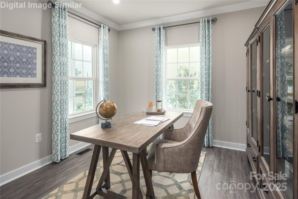 Welcome to the Ballenger — a spacious, flexible home designed to fit your lifestyle. Choose from beautiful exteriors with covered entries and personalize your interior with a flex room perfect for an office, study, or relaxation. The open-concept family room flows seamlessly into a modern kitchen featuring kitchen cabinets with crown moulding, quartz countertops, and a stylish wall tile backsplash, plus stainless-steel appliances. Elevate your cooking space with an optional wall oven. Add extra windows or a covered porch to enjoy sunny days, or a cozy fireplace for chilly evenings. A coat closet and family entry on the main level add everyday convenience. Upstairs, find three large bedrooms including an owner’s suite with two walk-in closets and a spa-like bath with dual vanities and a framed shower door. A linen closet and second-floor laundry offer added ease. Fourth bedroom converted into loft — ideal for a playroom, homework zone, or creative space. Located minutes from I-485, I-77, and local schools, enjoy shopping and dining at Riverbend Village, Super Target, and Lowe’s, or explore Mountain Island Lake. Future amenities include a pocket park and gathering space — perfect for making memories. To be built. Primary residence. Photos for illustrative purposes only.