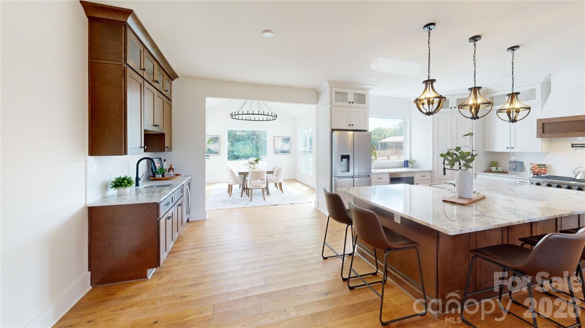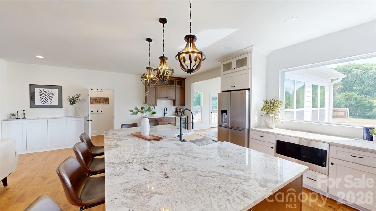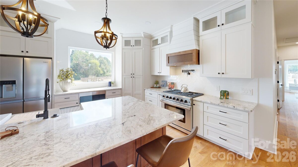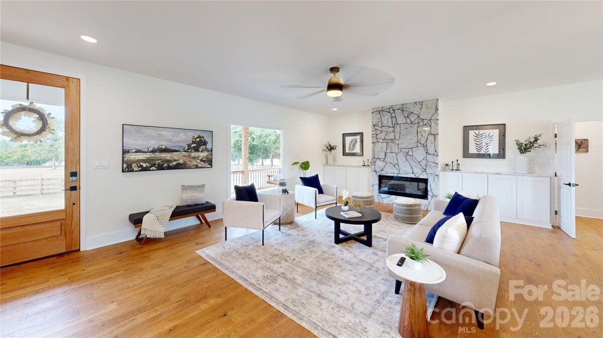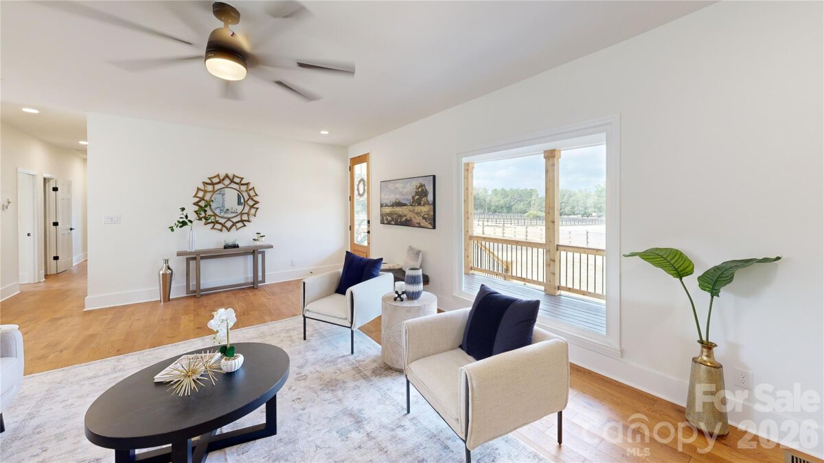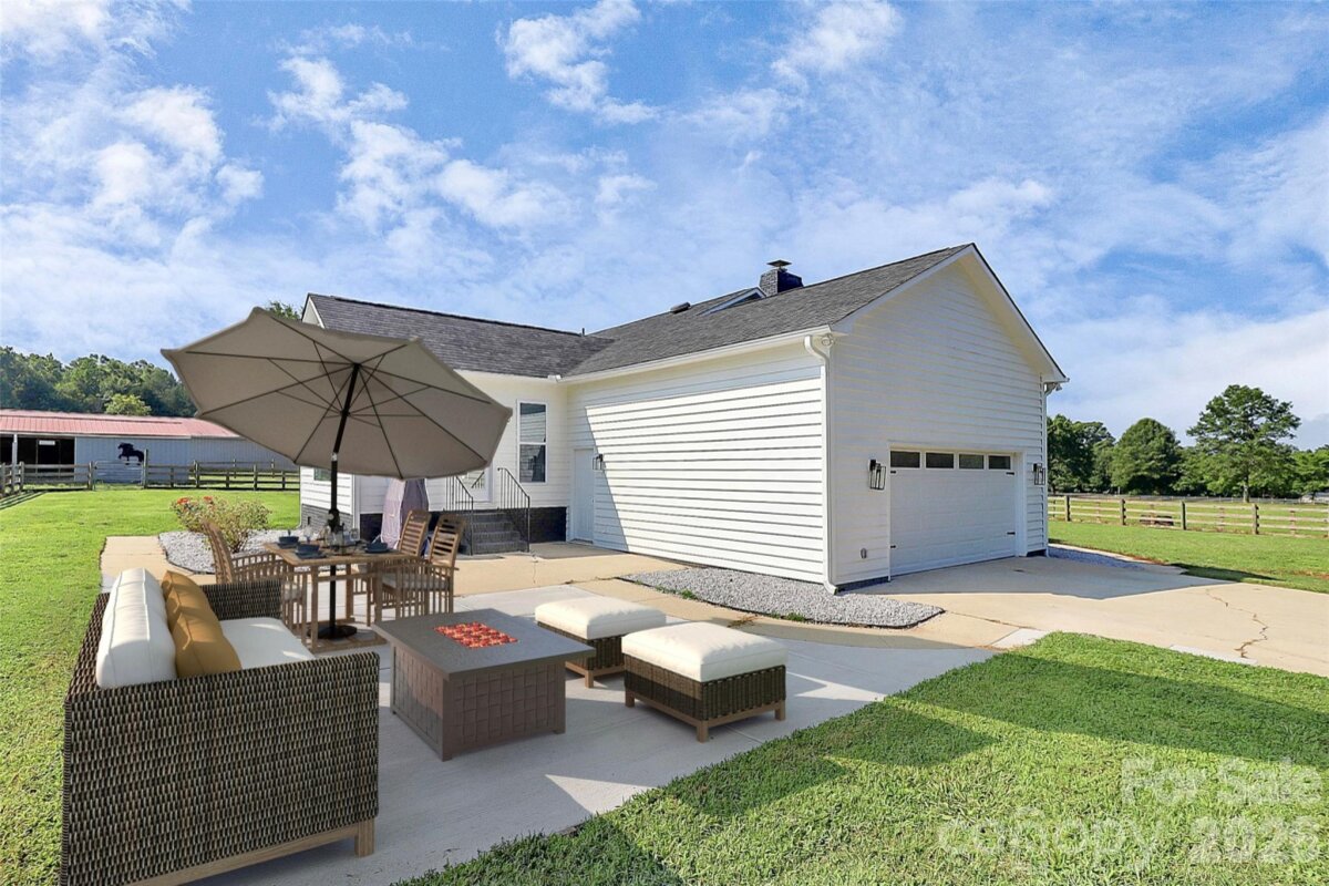 Must-see, fully remodeled equestrian ranch on 5.47 acres in Rock Hill, SC—just minutes from I-77. This turnkey property seamlessly blends modern farmhouse design with exceptional equestrian amenities, offering both a private retreat and outstanding income-producing potential. The beautifully updated 3-bedroom, 3-bath ranch features an open-concept layout with rich hardwood floors and a striking backlit stone fireplace that anchors the main living space. The designer kitchen is a standout, complete with granite countertops, a supersized island, and a custom hidden pantry—perfect for both everyday living and entertaining. Luxuriously updated bathrooms reflect timeless style and quality craftsmanship throughout. Equestrians will appreciate the thoughtfully designed facilities, including three barns with a total of 13 stalls—featuring European-style stalls in the main barn—along with two tack rooms and two additional storage areas and just shy of 3,000sqft. The property also includes multiple fenced pastures and paddocks, plus a circular corral, making it ideal for boarding, training, or personal use. With its established infrastructure, this property presents excellent opportunities for income generation, including horse boarding, training programs, or a boutique equestrian business. Turnkey, stylish, and serene—this is a rare opportunity to own a versatile equestrian property with both lifestyle appeal and business potential.