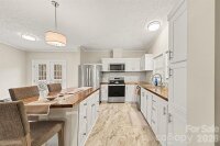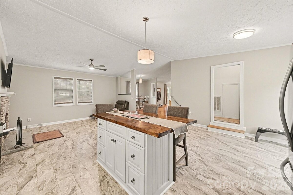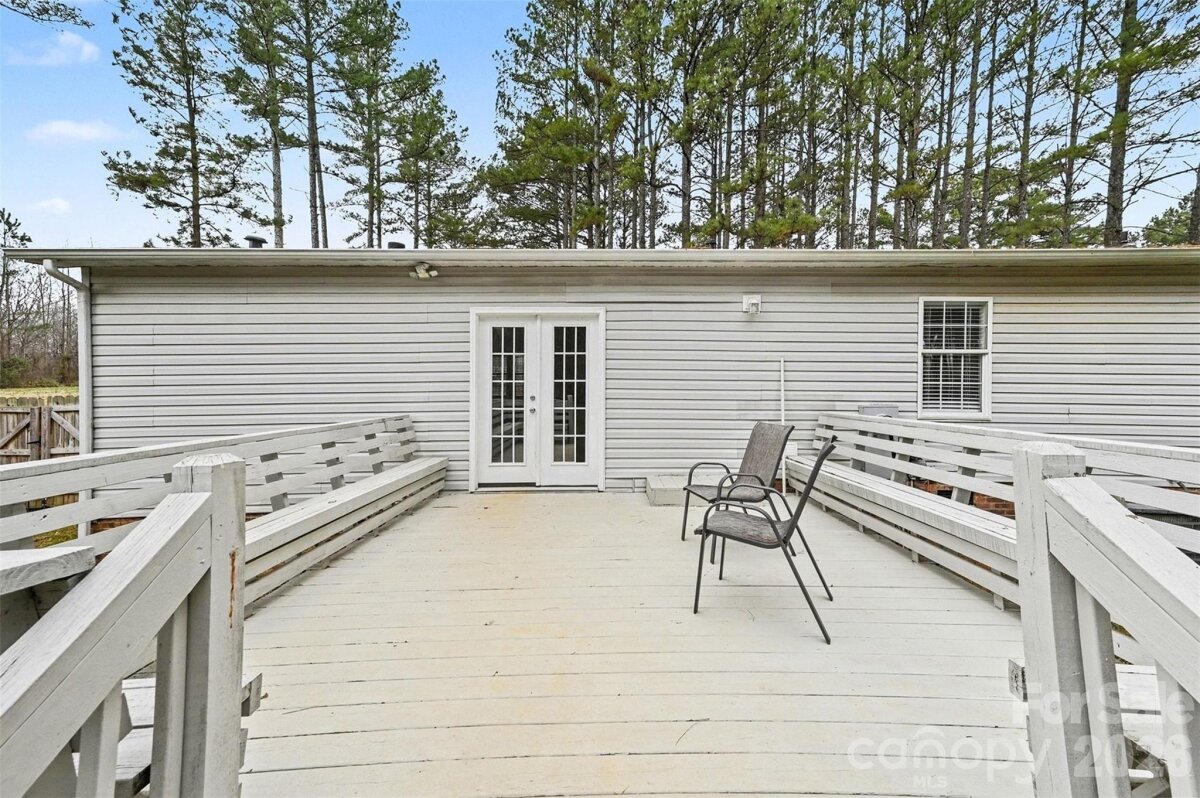 Set on nearly an acre in a quiet, wooded setting, this well-maintained single-story home offers 1,871 square feet of comfortable living space with three bedrooms and two full baths. The home combines a functional layout with inviting indoor and outdoor spaces. A welcoming front porch and spacious deck create ideal spots to relax and enjoy the peaceful surroundings. The level lot is framed by mature trees and features full privacy fencing, offering both open yard space and a natural backdrop. An oversized driveway provides ample parking. Inside, the open floorplan connects the main living areas, highlighted by prefinished wood flooring, tile, and durable vinyl plank throughout .The family room features a cozy wood-burning fireplace, creating a warm focal point for gatherings. The updated kitchen is designed for both everyday living and entertaining, complete with a center island with additional seating, pantry, and stainless steel appliances. Eat in area allows for easy entertaining and flows outside to the large deck. The spacious primary suite includes a private ensuite with dual vanities, free standing soaker tub, tiled shower and walk-in closet. Two additional bedrooms provide flexibility for guests or home office. With its blend of privacy, usable outdoor space, and thoughtfully designed interior, this property offers comfortable living surrounded by nature while still convenient to everyday amenities.