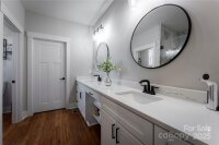 Welcome to this stunning single-family home that blends modern design with everyday comfort. The main floor showcases an inviting open floorplan, creating a seamless flow between the living, dining, and kitchen areas that is perfect for entertaining and gatherings. The gourmet kitchen features sleek quartz countertops, stainless steel appliances, and stylish finishes, all anchored by abundant natural light. The beautiful main level primary suite offers a private retreat with dual vanities, a large custom shower, and an oversized walk-in closet. Upstairs, two generously sized bedrooms and a full bathroom provide plenty of space for family or guests. Step outside to a backyard designed for relaxation and enjoyment. A spacious deck with privacy panels frames the new hot tub, while a matching outdoor shed adds both charm and functionality. The professionally landscaped yard is enhanced with a newly installed irrigation system, making upkeep effortless. This home is truly move-in ready, offering an open, airy layout inside and a thoughtfully designed outdoor oasis.