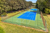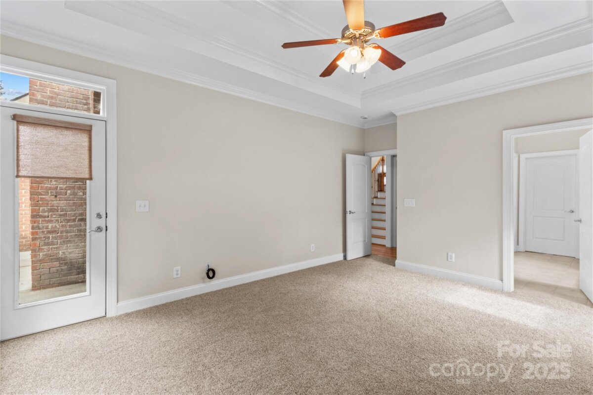 This stunning brick home, located in the Crescent Vistas, sits on putting green #1 of the golf course. A welcoming open floor plan with an elegant catwalk overlooks the vaulted great room with wrought iron spindles and graceful banister. Spacious primary suite shows off a double tray ceiling, large bath, walk-in closet, and brand new carpet. Suite features direct access to the large back raised patio where you can enjoy your morning coffee or evening beverage. This 4 BR 3 BA home has everything you need to call your home an oasis of relaxation: breakfast nook off the kitchen, elegant dining room with wainscoting, primary suite and guest bedroom on the main floor, tiled bathroom and laundry floors, ceiling fans, one of the two upstairs bedrooms has bathroom en-suite, a small reading nook/open space and a flexible room for a den, office or playroom. Kitchen has granite counters, ss appliances and hardwood flooring. Relax on your back patio and take in the surrounding natural beauty and gorgeous greens of the landscaped golf course unhindered by overhead lines. An attached 2-car garage is side facing. All new smoke alarms throughout home. Enjoy the pool and tennis courts included in the HOA fee.
