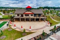 Welcome to Tree Tops where sophisticated charm meets resort-style living! This well-appointed home greets you with glowing hardwood floors throughout the main level’s open floor plan. The living room is anchored by a gas fireplace. The open kitchen boasts SS appliances, a corner pantry and a large island with bar seating to prepare meals while entertaining guests. Just off the kitchen lies the dining room with wainscotting walls. The adjacent sunroom leads to the covered, screened in porch–the ideal space to relax and enjoy evening cocktails with a book or friends. Situated for a private, comfortable retreat, the large primary bedroom is paired with a huge walk-in closet and an en suite with tiled flooring, dual vanities and a walk-in shower. The main level is made complete with a guest bed and bath at the front of the home. But the space doesn’t end there! This home comes equipped with an upstairs loft, bedroom and bath for additional guests and entertaining. Living in Tree Tops is like a permanent vacation! The community offers an array of resort-style amenities, including a clubhouse, heated outdoor pool, fitness center, amphitheater, tennis and pickleball courts, a dog park, and scenic walking trails. Residents also have access to a private lake with a dock and paddle sport launch.