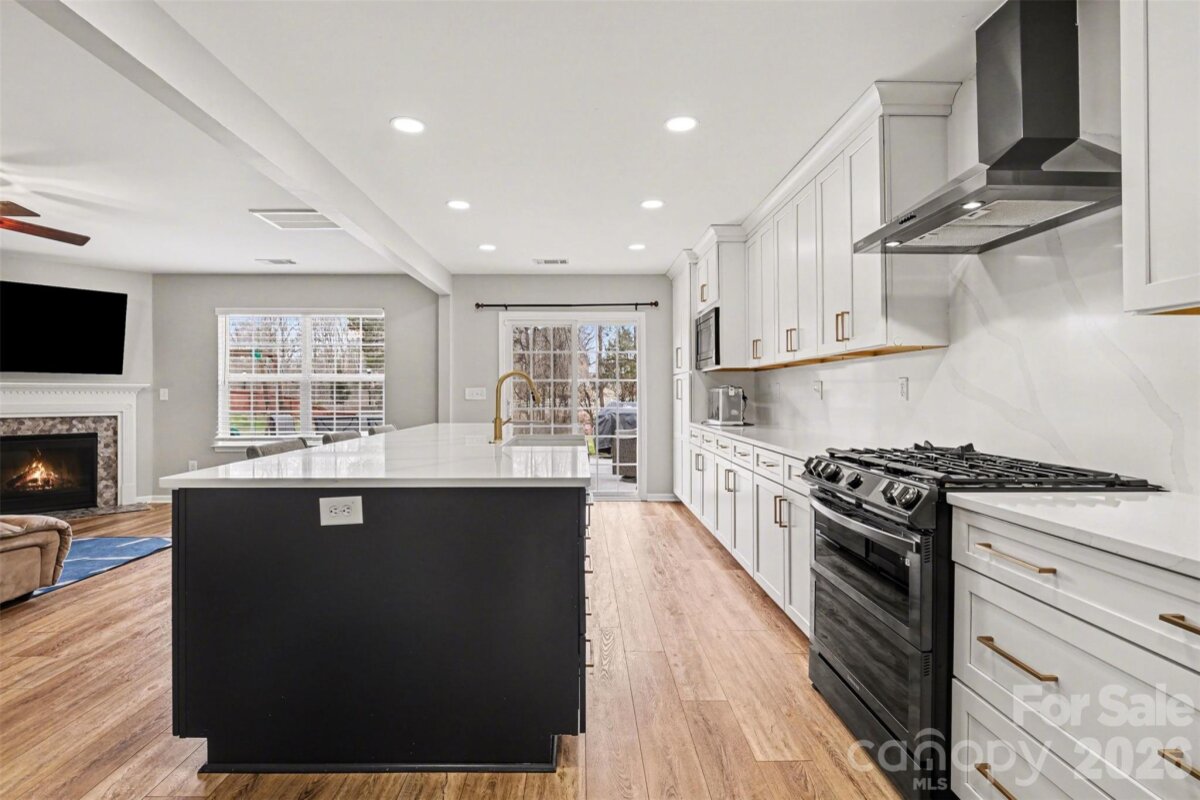 Cabarrus County school district and lower taxes! Situated on a quiet cul-de-sac in the desirable Caldwell Commons community, this beautifully maintained two-story home offers the perfect blend of space, comfort, and thoughtful updates. Set on a generous .34-acre lot with mature trees and a wooded backdrop, the property provides both privacy and a welcoming neighborhood atmosphere. The main level includes a highly sought-after full bedroom and full bathroom, ideal for guests, multi-generational living, or a private home office. The open layout flows effortlessly into the spacious great room, anchored by a cozy gas log fireplace, creating the perfect setting for everyday living and entertaining. The kitchen has been completely updated and shines as the heart of the home, showcasing quartz countertops, black stainless steel appliances and new cabinetry. A breakfast bar and pantry add both function and style, while the adjacent dining and breakfast areas provide ample space for gatherings large and small. Upstairs, you’ll find four additional bedrooms, including a generous primary suite featuring a garden tub and walk-in closet. The upper-level laundry room adds everyday convenience. The surrounding area offers convenient access to shopping, dining, major highways, and everyday amenities while maintaining the charm and community feel that makes this location so desirable. With its flexible floor plan, updated kitchen, main-level bedroom and full bath, and access to excellent schools and neighborhood amenities, this home presents an exceptional opportunity to enjoy comfortable living in one of the area’s most sought-after communities.