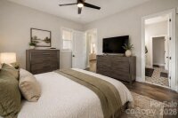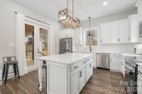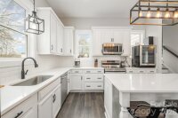 Welcome home, where modern meets country living. Custom designed and tastefully nestled on a flat almost 1 acre lot outside of city limits. This beautiful 3-bedroom, 2.5-bath home offers picturesque mountain and farmland views, NO HOA, and proximity to Crowder Mountain from the back porch. Boasting approximately 2,000 sqft. with 19'4" ceilings in the 2-story great room. 10' ceilings throughout the remainder of the 1st floor, custom 8' interior & exterior doors, and 7' windows in the lower level of the great room. The custom kitchen includes white linen glazed painted maple wood cabinets with soft close full extension drawers. A large island with white quartz countertops, white beveled tile backsplash, and stainless steel appliances. The property provides added flexibility with a convertible bonus space above the 2 car carport, ideal for future expansion or recreation. Enjoy privacy, outdoor space, and freedom for recreational use—all just minutes from nature and 40 minutes from uptown. *Photos have been virtually staged