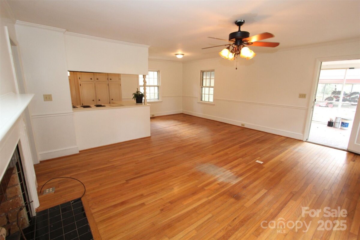 TWO BEDROOM ONE BATH 1,021 SF BRICK RANCH. GREAT LOCATION, CONVENIENTLY LOCATED NEAR GROCERY STORES, RESTAURANTS, AND SHOPPING!!! Featuring hardwood floors, fireplace with gas logs, and an open floor plan that connects the family room to the kitchen and dining area, this home is both inviting and functional. The kitchen is fully equipped with a range, refrigerator, dishwasher, and pantry for added storage. Laundry closet with stackable washer and dryer. Additional highlights include a screened side porch, fenced in front and back yard and a paved driveway with a double carport.