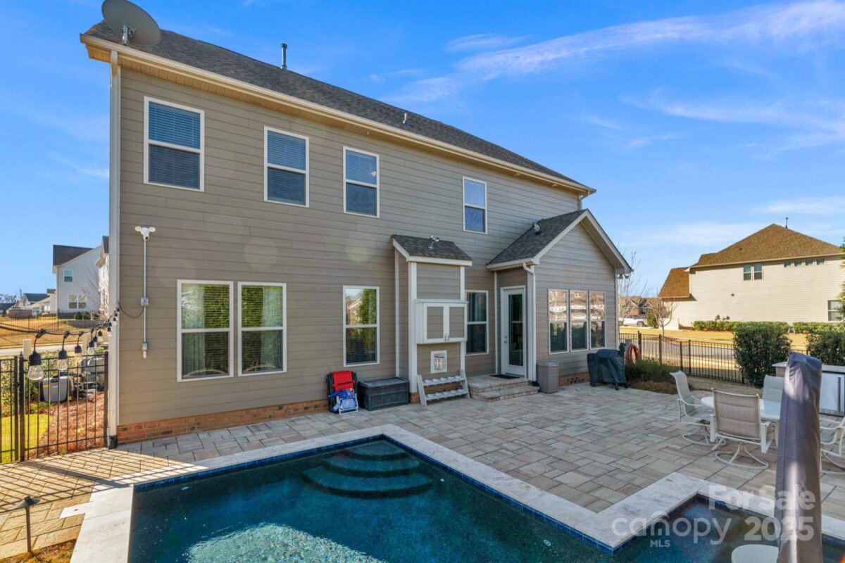 Looking for the perfect blend of backyard paradise and resort-style community living in highly sought-after Millbridge. This beautifully landscaped home welcomes you with fresh exterior paint and a charming front porch. Your be welcomed as you enter the foyer. Curved archways lead you to the formal dinning room or the nice sized family room with gas fireplace. Custom walk in pantry with wine/beverage refrigerator and butcher block countertop. Butler pantry which is great for entertaining. Gourmet kitchen with white cabinets/gas cooktop and a large island that overlooks the family room. Guest bedroom downstairs with access to a full bath. Finished two car garage with epoxy coated floors and 50 amp outlet. Whole house water filtration system is conveying. Finished storage under the stairs has many purposes. Upstairs you have spacious primary bedroom with new floors, custom solid wood birch closet system in primary closet. Three secondary bedrooms and a large bonus or firth bedroom. Laundry room is pre plumbed for a utility sink. Enjoy the three year old heated salt water gunite pool with built in table and umbrella. Outdoor kitchen with grill/refrigerator and prep area. Enclosed TV in backyard conveys and completes this entertainer delight. Residents of Millbridge enjoy resort style amenities including a grand clubhouse with coffee bar, movie room, and party space; multiple pools with a lazy river; sports courts; fitness facilities; scenic walking trails; and award-winning schools. All with low Union County taxes and convenient access to the best of South Charlotte.