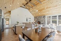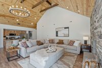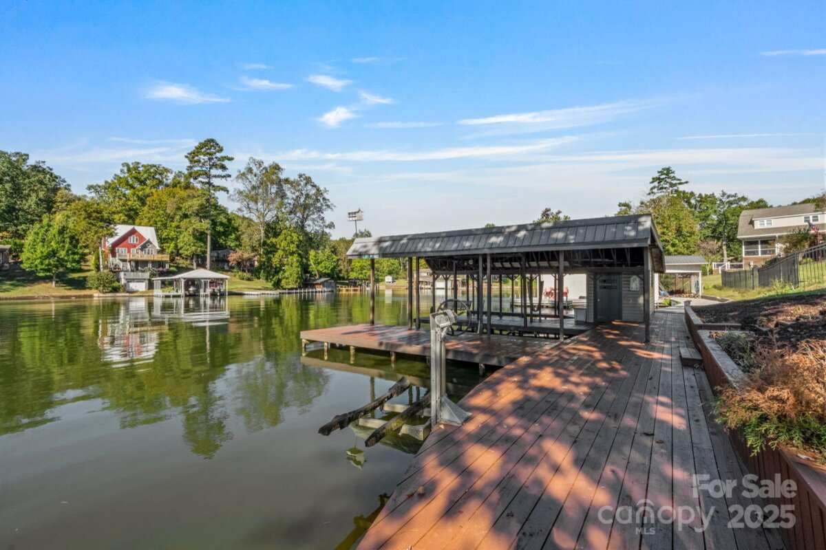This beautifully remodeled and furnished Lake Tillery waterfront home offers 1,731 sq. ft. of open living space all on one level with soaring cathedral ceilings in both the great room and primary suite. It features 2 bedrooms, 2 full baths, and 2 versatile bonus rooms. Every detail has been updated — new roof, kitchen, bathrooms, flooring, windows, and concrete driveway. A wall of glass and sliding doors in the great room make it feel as though the lake is right at your door. The kitchen features natural cherry cabinets, granite countertops, new stainless appliances, and a built-in flat-black china cabinet. The large covered porch with tongue-and-groove pine ceiling mirrors the warmth of the great room. Enjoy peaceful cove views extending to the main channel and Garrison Bridge. With deep water and a spacious two-slip boathouse this home defines lake living at its best!