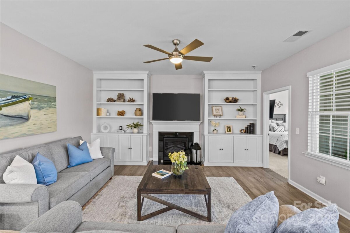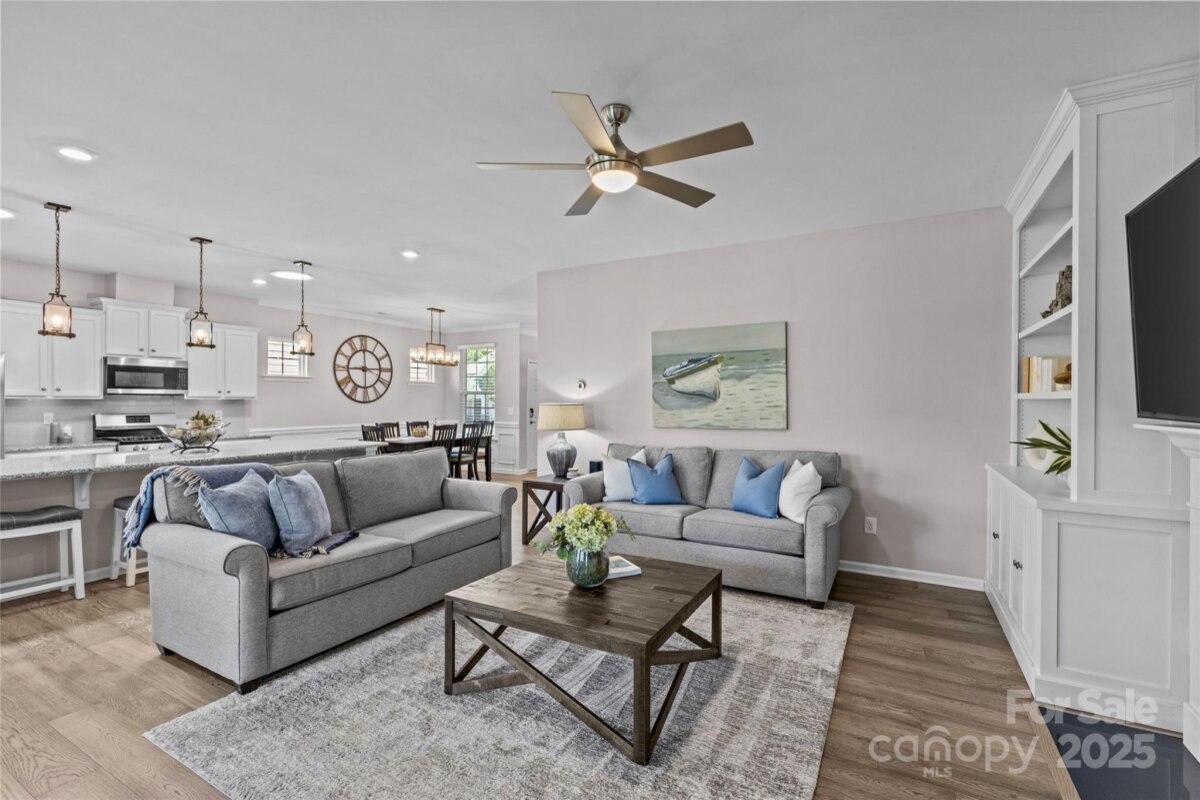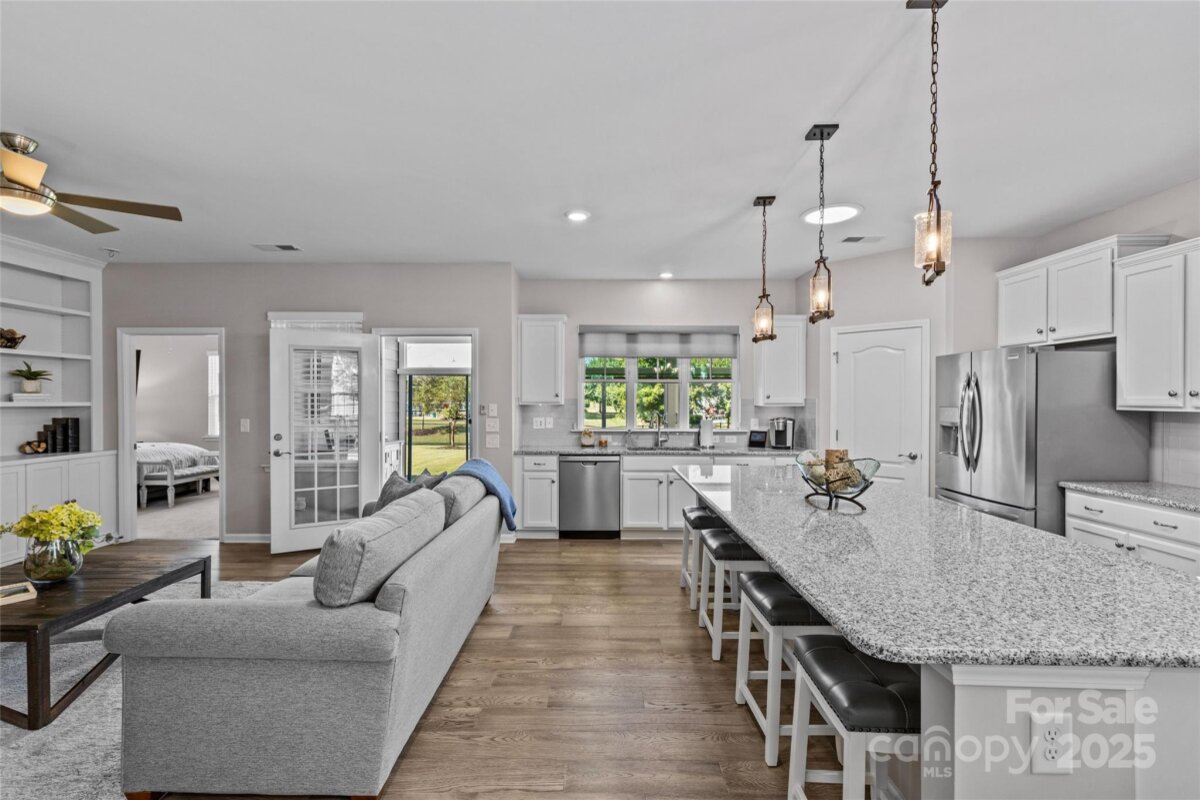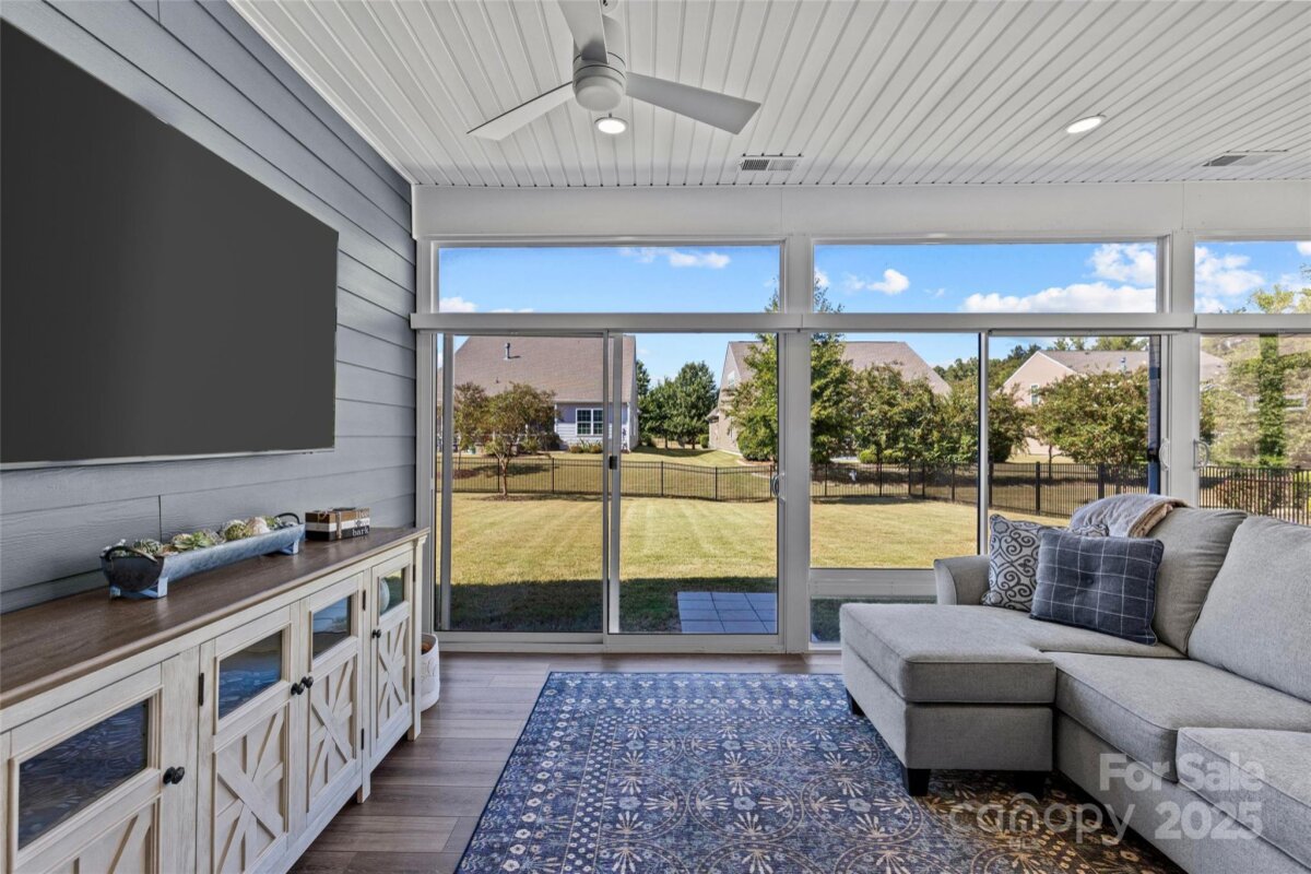 Welcome to this beautifully maintained single-story ranch located in the gated, vibrant 55+ community of Tree Tops. Lovingly cared for and thoughtfully updated by the original owner, this home offers an ideal blend of comfort, style, and functionality. The open, split-bedroom floor plan creates a bright and inviting living space featuring custom built-ins in the living room and an office nook with a built-in desk and drawers for added convenience. A fabulous all-season room—heated, cooled, and finished with durable LVP flooring—provides the perfect flex space for relaxing or entertaining year-round. At the heart of the home, the stunning kitchen impresses with white cabinetry, a large center island, gas range, ample storage, and windows that fill the space with natural light while offering views of the sunroom and backyard. Built in 2018, this home combines modern design with low-maintenance living in one of the area’s most desirable active adult communities. Enjoy resort-style amenities including a clubhouse, pool, fitness center, dog park, walking trails, pickleball and tennis courts, plus a full calendar of social activities designed for an active lifestyle.