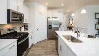 The popular Bristol plan features wide entry hallway with wainscoting, drop zone area, 9 ft ceilings and crown molding throughout home. The living room with gas fireplace is open to the spacious kitchen and adjoins the dining area. Primary bedroom is large and features double raised height vanities with quartz counters, walk in tiled shower with built in bench and expansive closet. Features of this home also include Rev Wood flooring in living areas, halls, dining and kitchen. Tile in laundry and baths, quartz counters and large island in kitchen. Gas range, microwave, dishwasher and garbage disposal are included. Home also features on demand water heater, Hardie board siding, architectural shingles, gas fireplace and much more! Come tour this beautiful community located near downtown Troutman, Lake Norman State Park and all the shopping and dining that Mooresville offers!