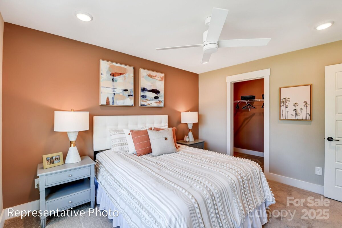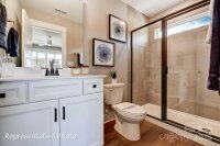 This Colfax plan features a guest suite on the main with an ensuite bath AND a secondary bedroom upstairs, also with an ensuite bath. The home has 5 bedrooms, 4.5 baths in total with more than 3,400 square feet of living space. The main floor also features a designer kitchen with a butler pantry, family room with Cosmo fireplace and shiplap wall, powder room, dining room with tray ceiling, and a study with French doors and a faux coffered ceiling. The kitchen features quartz counters, a tile backsplash, and stainless appliances, including a gas cooktop, range hood, and wall oven. The upper floor has 9-foot ceilings & includes the loft, primary suite, three secondary bedrooms, two full baths, and the laundry room. All the bathrooms have quartz counters and give you plenty of options: a luxury shower in the primary, a 4-foot shower with bench seat in the guest suite, a 5-foot shower in the upstairs secondary suite, and a tub/shower combo in the upstairs hall bath. Other wonderful extras include a rear screened porch, tray ceiling in the foyer, and a drop zone in the mud room. This home has it all and more! Visit today!