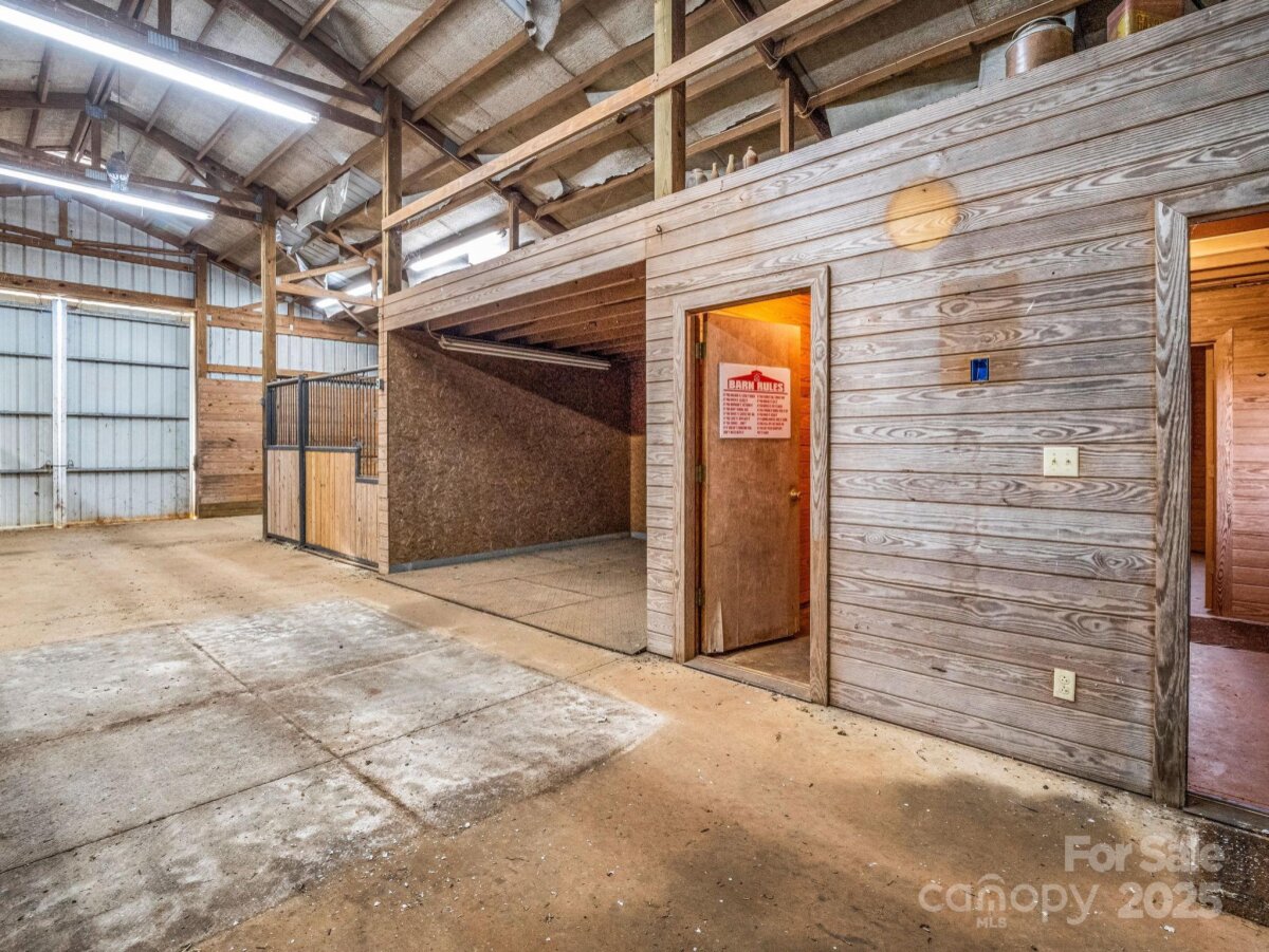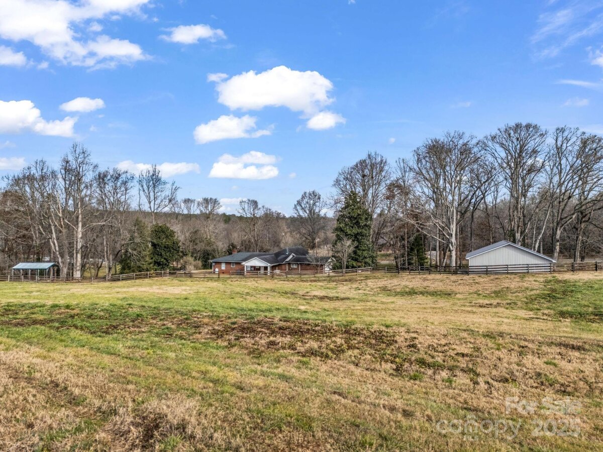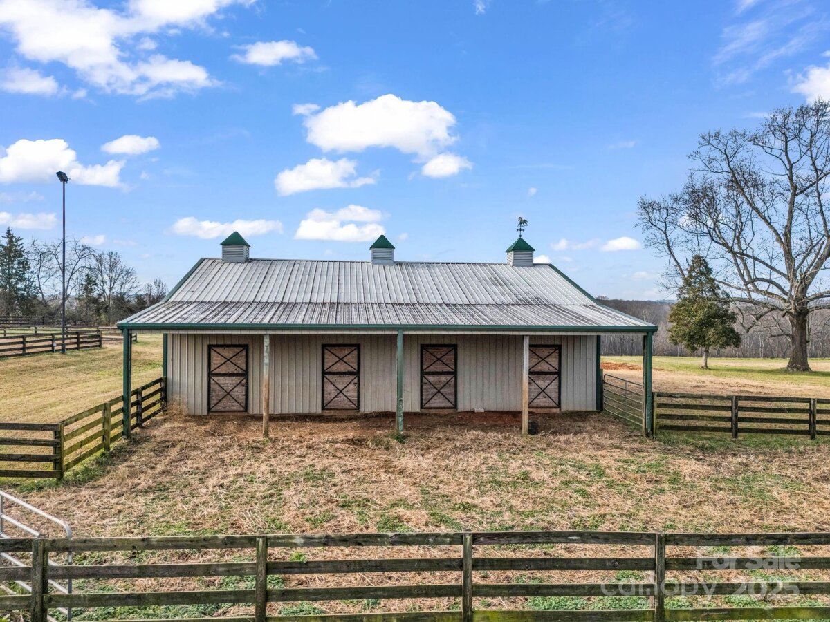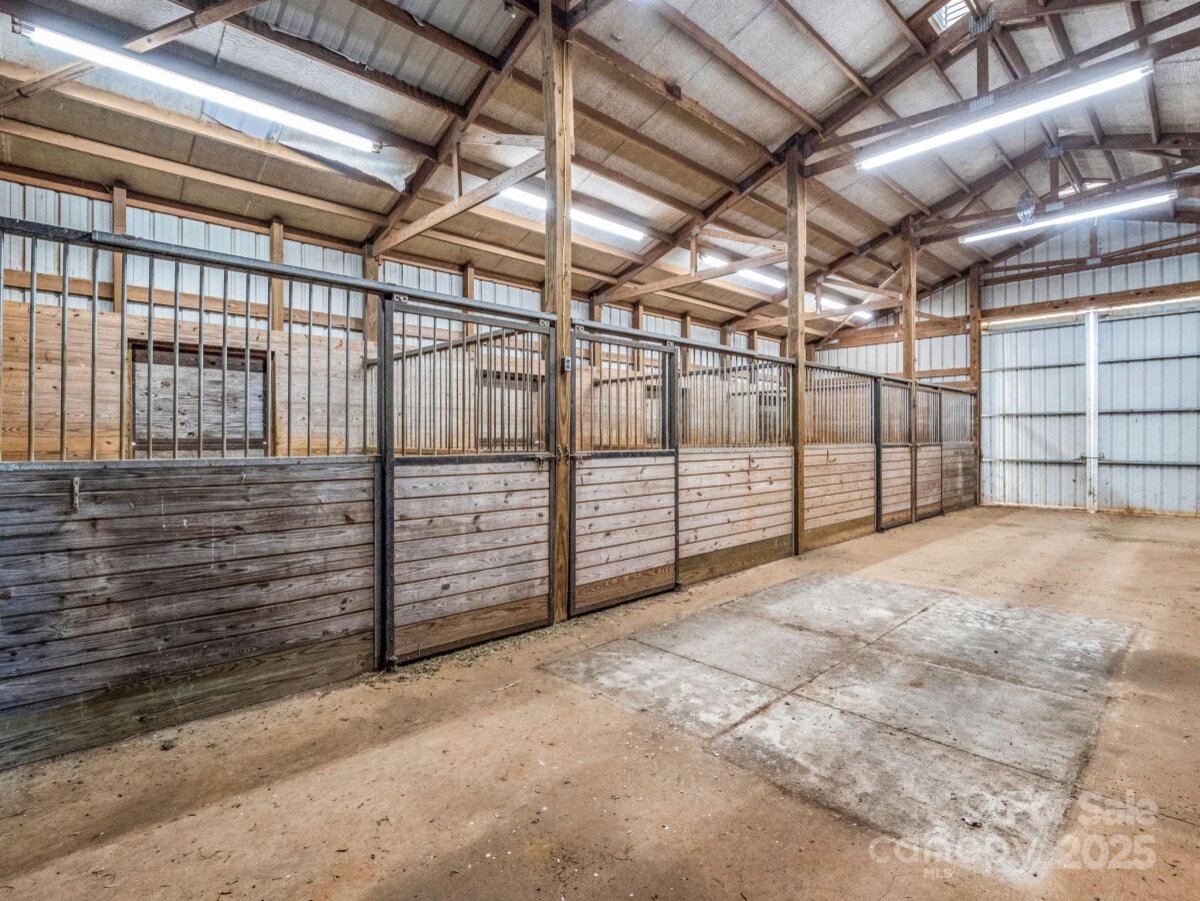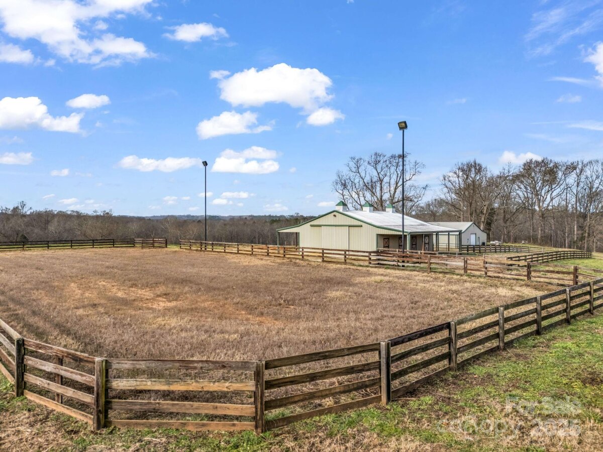 Located just 25 miles from Tryon International Equestrian Center sits the perfect combination of equestrian function and small-town living. Situated on over 55 acres, there's a THREE-bedroom (2-bedroom septic) brick ranch beaming with natural light, hardwood floors and plenty of storage space throughout. The primary bedroom has a wood burning fireplace & a large bathroom with 2 walk-in closets. Enjoy coffee on the patio, overlooking the pond in the front yard. There is an attached two-car garage that leads into your spacious laundry room. The crawlspace has a dehumidifier and sump pump in place with routine maintenance through Nelon Cole. An additional 6-car detached garage sits right off of the concrete driveway, just steps from the home. There is a dedicated asphalt driveway with gated entrance that leads to the barn, metal building & pasture. Metal building is climate controlled with ample storage, garage doors, electrical plugs, heated water, commercial kitchen and space for an RV. The barn is equipped with 5 stalls, feed/storage room, loft, half bathroom & an office/living quarter (electric wall unit with heat & air). The septic for the barn was replaced in 2024. There a nice sized arena located beside the barn with lighting installed. Take advantage of this rare opportunity while it last!