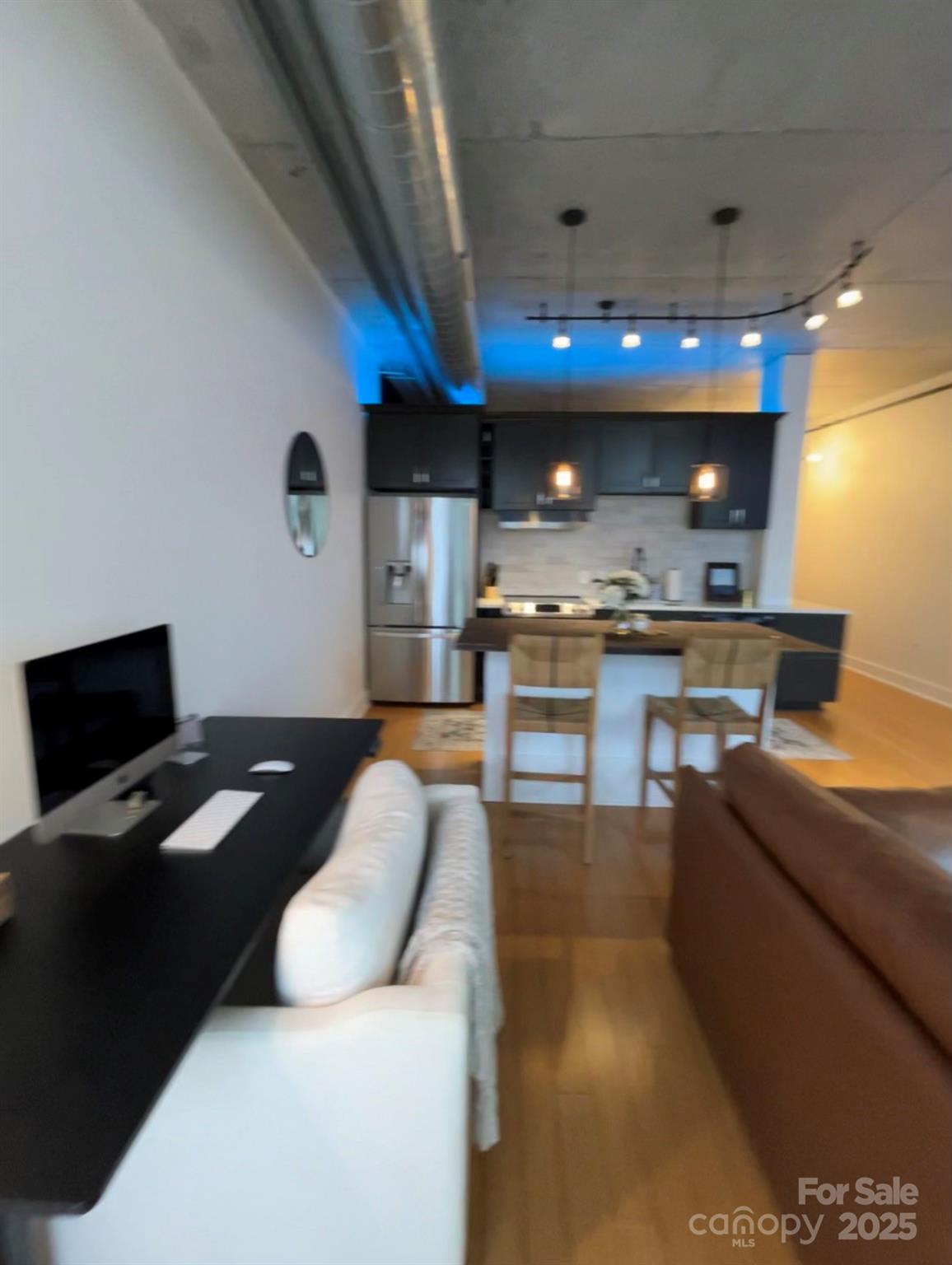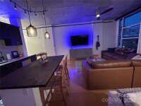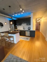 Soak in stunning skyline views from this 10th-floor Uptown condo with a private balcony overlooking Spectrum Center and the heart of Charlotte. Walls of glass fill the living space with natural light and frame the city backdrop, making the view part of your everyday life. The kitchen features a stainless steel refrigerator, marble countertops, refreshed cabinetry, and a large island that anchors the open layout. The bedroom is generously sized with a walk-in closet and built-in bookshelf. A newer full-size stackable washer/dryer and one secure parking space add convenience. Steps to the light rail, dining, nightlife, parks, and sports venues, this condo combines location, comfort, and investment appeal in Charlotte’s vibrant Uptown district. HOA includes water/sewer.