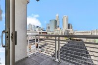 Experience Uptown living at its best from this 10th-floor condo showcasing panoramic skyline views of Charlotte and the Spectrum Center below. Walls of glass flood the space with natural light, seamlessly connecting the modern interior to the vibrant city backdrop beyond. The kitchen is a statement piece with marble countertops, refreshed cabinetry, and stainless-steel appliances, setting the stage for effortless entertaining or relaxed everyday living. The open-concept layout flows into the living and dining areas, leading to a private balcony where you can unwind and take in the view. The spacious bedroom features a custom walk-in closet that includes a full-size, stackable washer and dryer—combining convenience with design. One secure parking space adds ease to your Uptown lifestyle. Just steps from dining, nightlife, parks, sports venues, and the light rail, this residence delivers the perfect blend of sophistication, comfort, and accessibility in Charlotte’s most dynamic district. HOA dues include water and sewer.