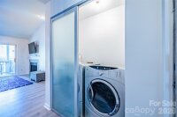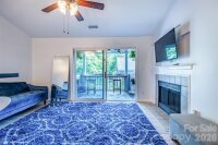 Freshly painted crisp white! This bright and airy top floor home in popular Fourth Ward Square feels like a treehouse. Adorable balcony overlooks tree line and pool. Close to everything Uptown has to offer. Enjoy Panther, Knights, Hornets and soccer games, concerts, restaurants, bars, parks and light rail. Updated with stainless steel appliances, granite countertops, LVP flooring, tiled bath, vaulted ceiling, wired for Google fiber and large covered balcony with a storage room and bar. Wood burning fireplace. Stainless front load washer and dryer to convey - stackable to create more storage. One deeded parking space. Extra parking on the street. Parking passes available for street parking from ParkIt. Gas fire pit, clubhouse, dog park, salt water pool and fitness center make this a great place to call home. Clubhouse is available to rent for private events and features a rooftop terrace. Roof 2024, sprinkler system 2024, dishwasher 2023, LVP flooring 2021, hot water heater 2021, HVAC maintained seasonally. Seller to pay assessment for sprinkler system in full at closing. Rentals allowed: leases must be >6 months in length, 20% of total units permitted to be tenant-occupied; rental cap has been met, there is a waiting list. Association will vote at the end of February on increasing rental %.