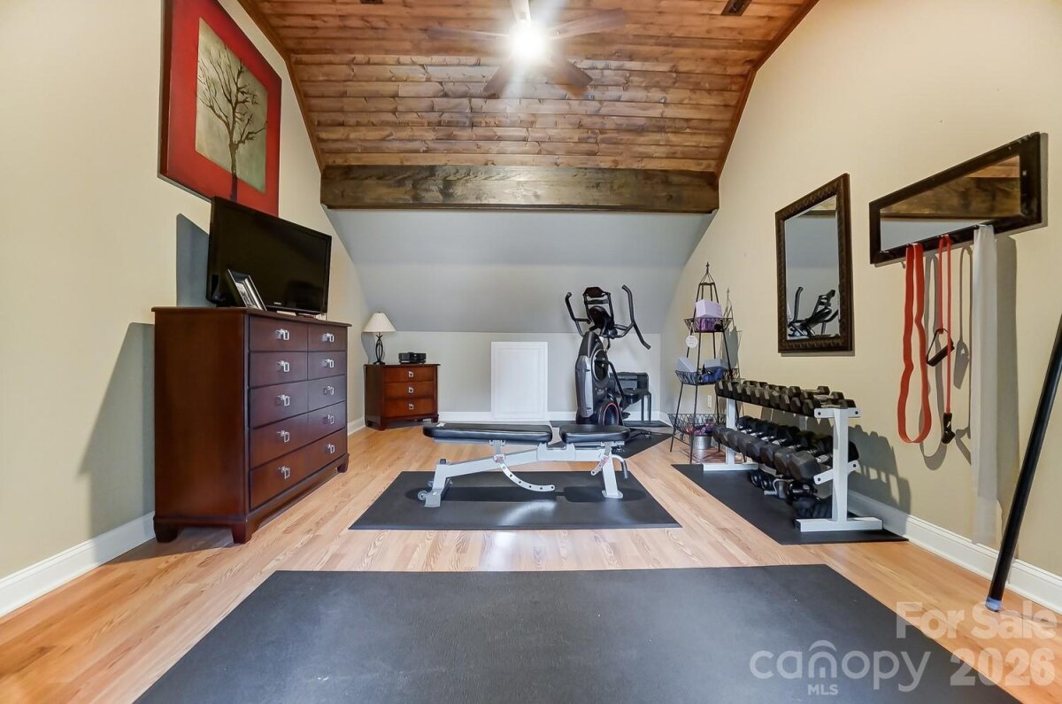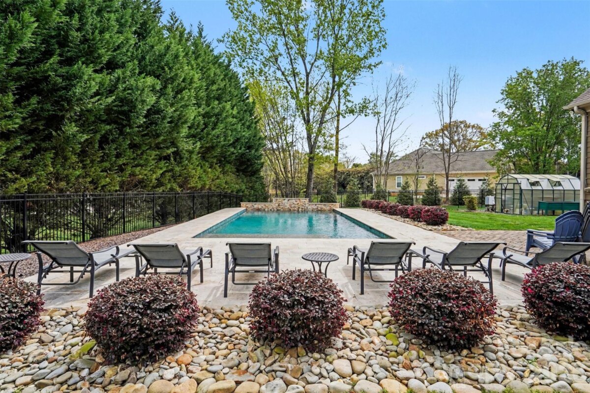 You CAN have it ALL! OUTDOOR OASIS and an immaculately maintained, like-new Craftsman home in the popular Johnsfield subdivision with plenty of room for a 4th bedroom! Great location near Cleveland Country Club & Hwy 74 for a quick commute to the Charlotte area. NEW PEBBLE TEC POOL WITH WATERFALL, SUN-SHELF, and HIGH END TRAVERTINE POOL DECK will make your summers a dream!!! There is also a spectacular 328 sf screened porch with vaulted, wood-paneled ceiling, Trex flooring, adjustable sun shades, and mounted outdoor TV. This leads to an open deck with steps down to the paver patio, pool, and fenced yard. The landscaping is impeccable with white stone mulch, flowering plants & trees, level lawn, and green house! Inside, find an open floor plan with so many details! Coffered & vaulted ceilings, gleaming hardwoods, granite, high end S/S appliances including a Keurig coffee-dispensing refrigerator and DOUBLE OVEN gas range. Fabulous primary suite on main with ensuite bathroom with garden tub, huge walk-in shower with frameless shower door, separate vanities, water closet, and large walk in closet with high end organizational system. There is plenty of space upstairs with 2 bedrooms and 2 spacious BONUS ROOMS...you can easily have a 4th bedroom if needed! Finished garage with custom SwissTrax flooring & Elfa drop zone can be used as additional living space! So many details! PLEASE NOTE: current furnishings in the home are different from the pictures! Upstairs bathroom has been painted navy blue and picture shows beige walls.