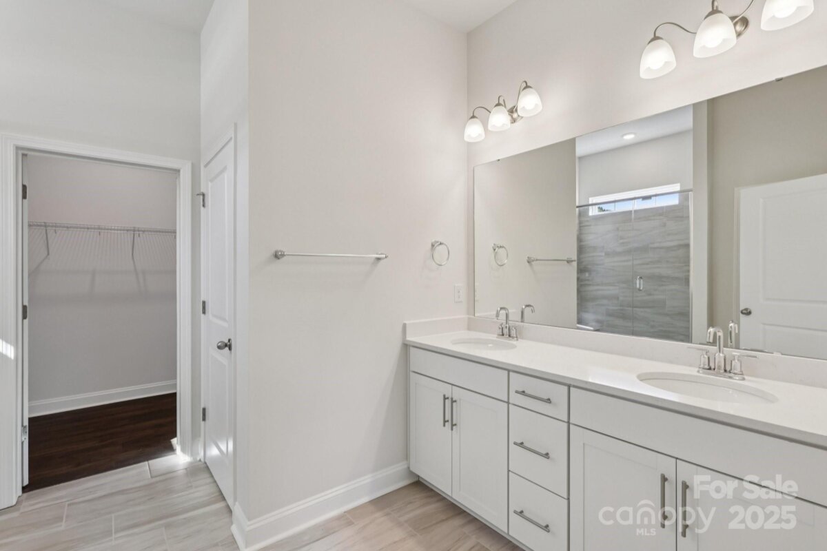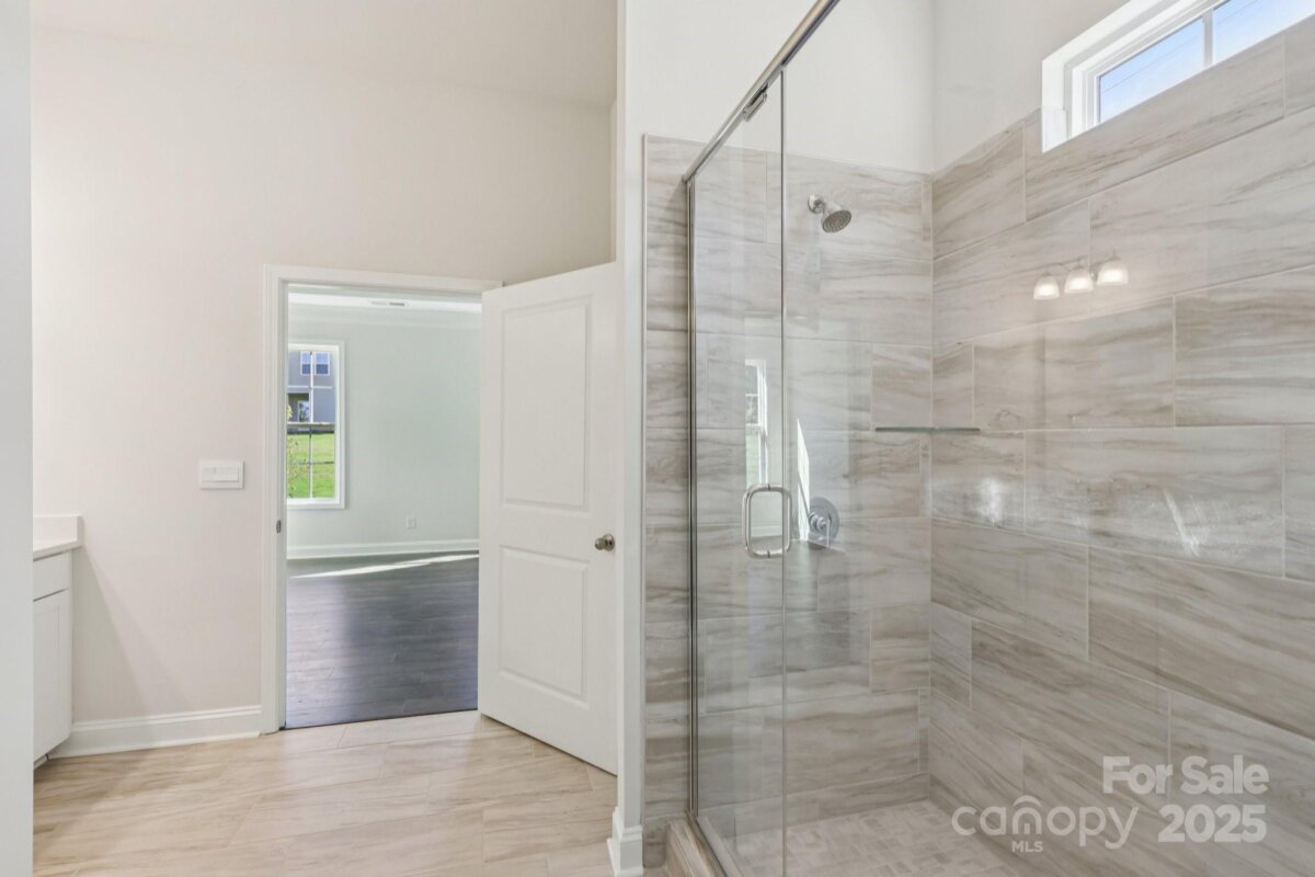 Azalea with bonus second floor! Large open concept living with spectacular kitchen island. This plan features 10 ft ceilings, crown molding throughout home, wainscoting in dining area and foyer. The primary bedroom is on the first floor and has a tray ceiling, raised height double vanity with quartz counters. Gas fireplace in living room. RevWood floors in the entry hall, great room, dining and kitchen area. 2nd fl. features, bedroom, full bath and bonus room. Hardie Board siding and stone work on front of home. Covered back porch. Brookside is conveniently located near downtown Troutman, Lake Norman State Park and all the shopping and dining of Mooresville. The community includes a dog park, walking trails and a bocce court. On Demand Tankless Water heater and "Home is Connected" Package is included.
