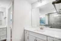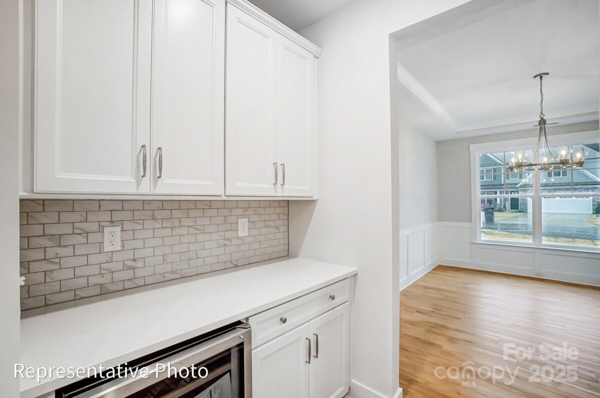 This Colfax plan features a guest suite on the main with an ensuite bath AND a secondary bedroom upstairs, also with an ensuite bath. The home has 5 bedrooms, 4.5 baths, a sunroom and more than 3,600 square feet of living space. The main floor also features a designer kitchen with a butler pantry, family room with Cosmo fireplace and shiplap surround, powder room, dining room with tray ceiling, and an office with French doors and a faux coffered ceiling. The kitchen features white cabinets, quartz counters, a tile backsplash, and stainless appliances, including a gas cooktop, range hood, and wall oven. The upper floor has 9-foot ceilings & includes the loft, primary suite, three secondary bedrooms, two full baths, and the laundry room with storage cabinets. Other extras include quartz counters in all baths, metal balusters, and Enhanced Vinyl Plank flooring. This home has it all and more! Visit today!