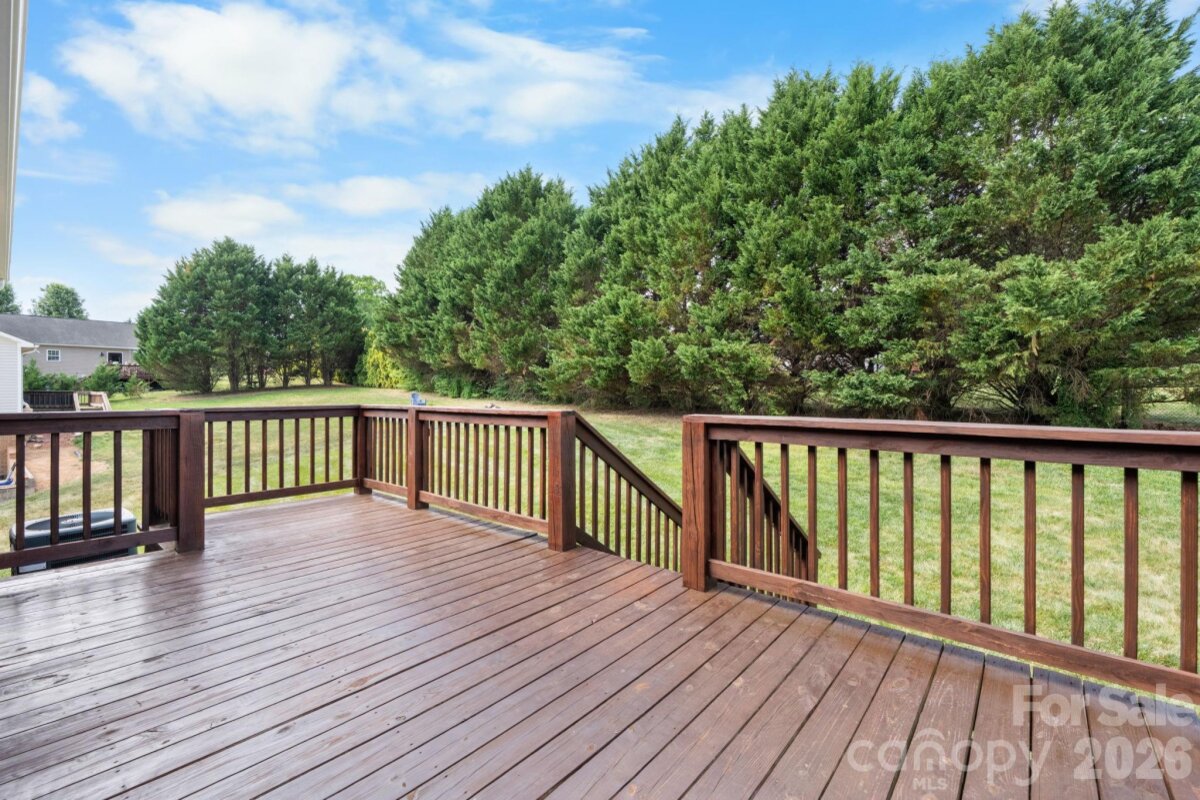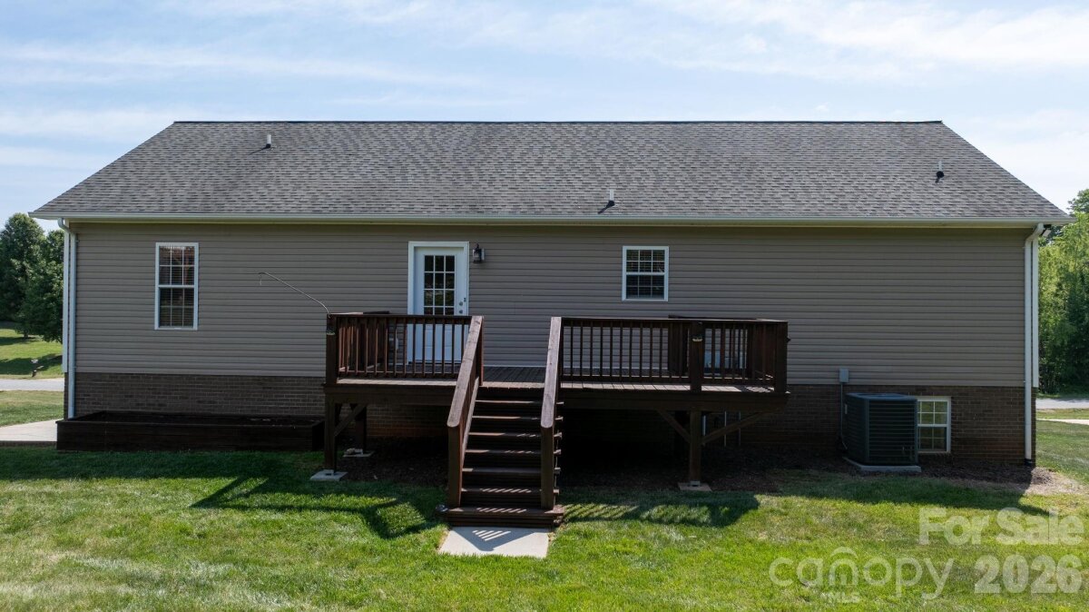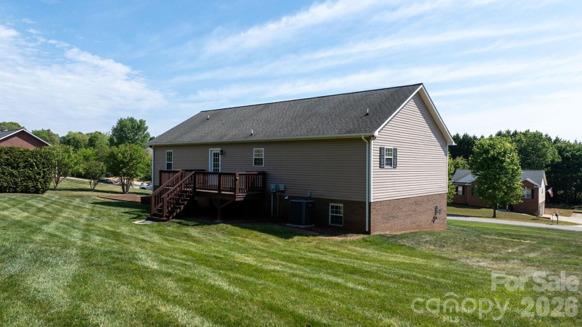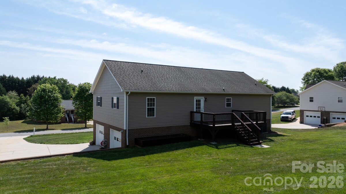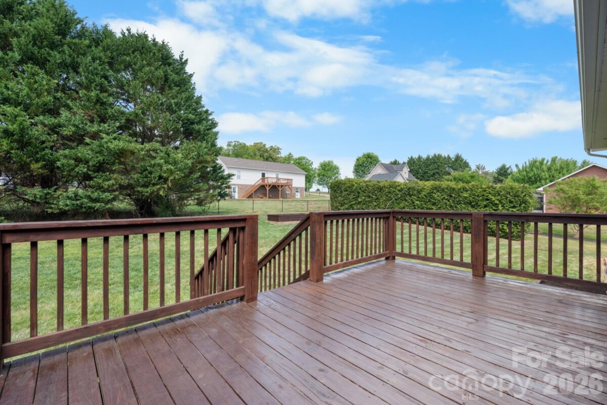 Welcome to this meticulously maintained 3-bedroom ranch with a full walkout basement in the desirable Twin Oaks community. Perfectly situated for lake lovers, this home is located within two miles of multiple Lake Hickory public boat accesses, making a day on the water incredibly convenient. This home offers vaulted ceilings and a popular split-bedroom layout for added privacy. With 1,568 sq. ft. on the main level and a full basement below, there is plenty of room to grow and customize. The property has been completely refreshed with all-new paint throughout—including a professional finish on all doors and trim—complemented by new basement flooring and new garage doors. The main level offers a seamless flow, while the full basement adds incredible versatility with finished recreation space, a potential second laundry area, and massive dedicated storage. Outside, enjoy a beautifully maintained lawn and landscaping, and three large raised garden beds ready for your seasonal planting. A freshly stained deck provides the perfect spot for outdoor entertaining. Located in the Grace Chapel community with no city taxes and easy access to area boat ramps.