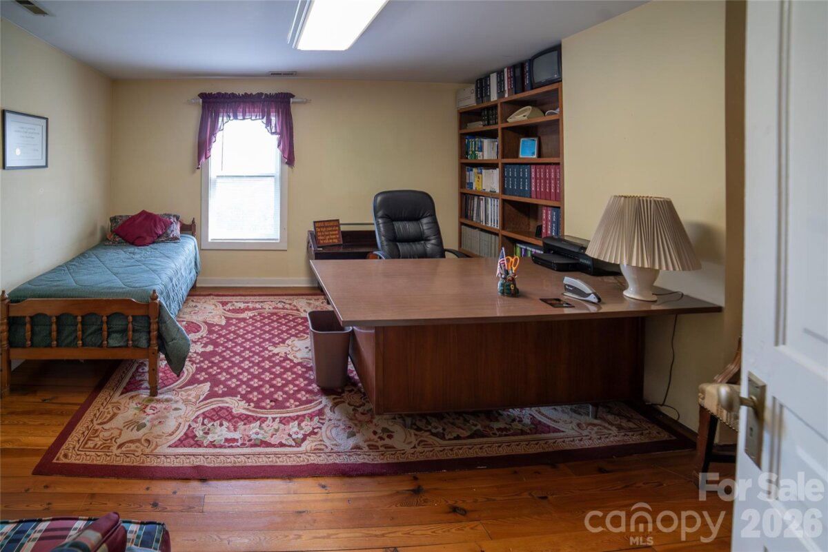 Former historic home now business is located on Mulberry Street across from the UNC Health Caldwell hospital campus in the heart of downtown Lenoir. Originally built in 1890, the building has been refurbished but maintained many of the historic home's unique features. 2620 square feet in excellent condition, beautiful hardwood floors, arched cased opening to reception/main office with two other large offices on first floor, one with natural gas fireplace. Main level also includes full kitchen, half bath, laundry/utility room and separate storage room. Upstairs are three large offices with extensive bookcases and a full bath with shower and vintage vanity sink. Building has basement with several sections and both interior and exterior access. Central heat and air, natural gas water heater, newer roof and pristine wrap-around porch. Original fireplace chimneys closed. Other amenities include (approx.) 375 square foot outbuilding with electricity for additional workshop or storage at the rear of the building. Parallel parking on the street and additional parking in rear just steps from rear entrance. Zoning is O-I (Office/Institutional) Mulberry is a 5,000 car per day city street, walkable to downtown restaurants, banks, coffee shops, etc. Lenoir is the County Seat. Location perfect for financial, medical/dental, legal, administrative commercial business.