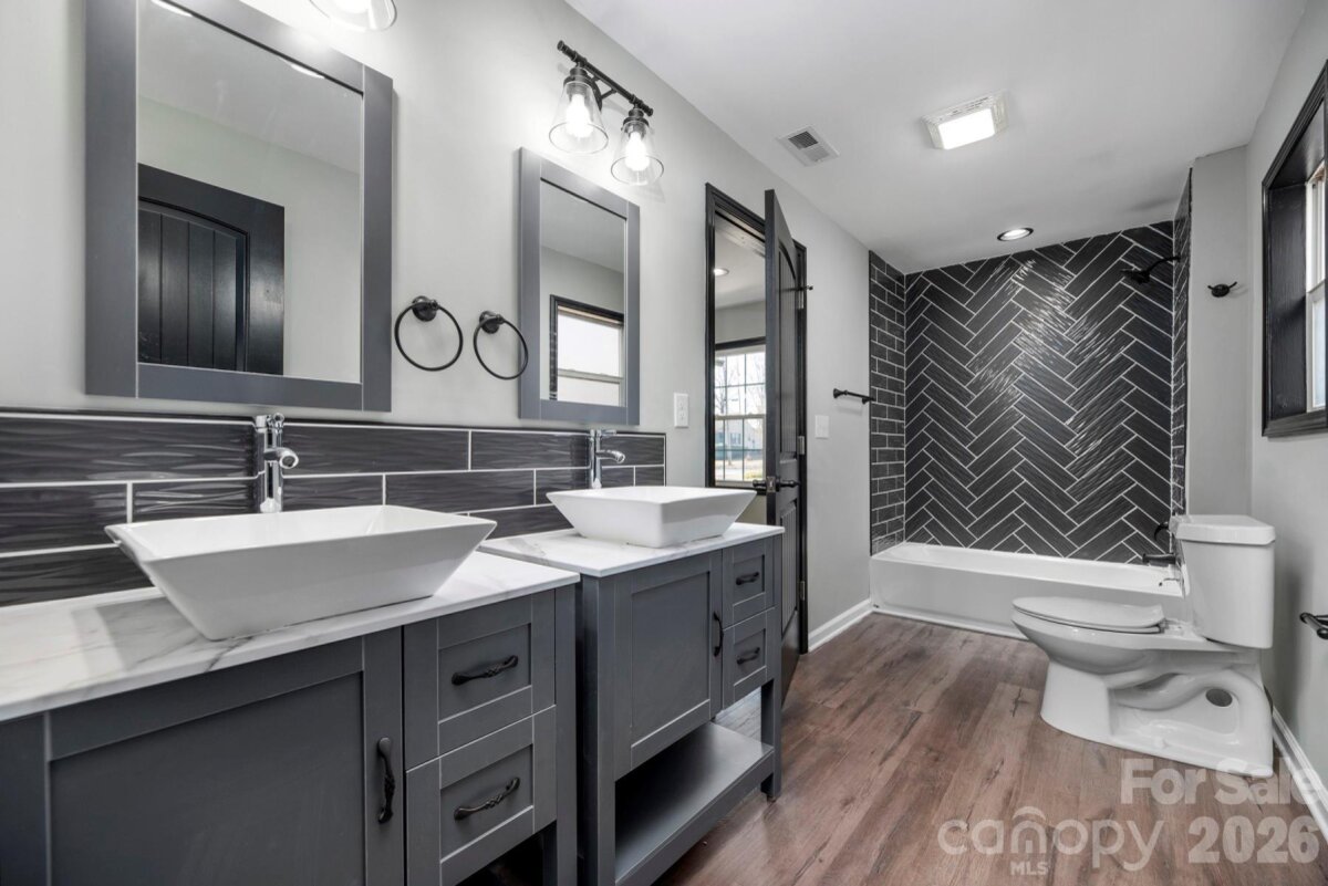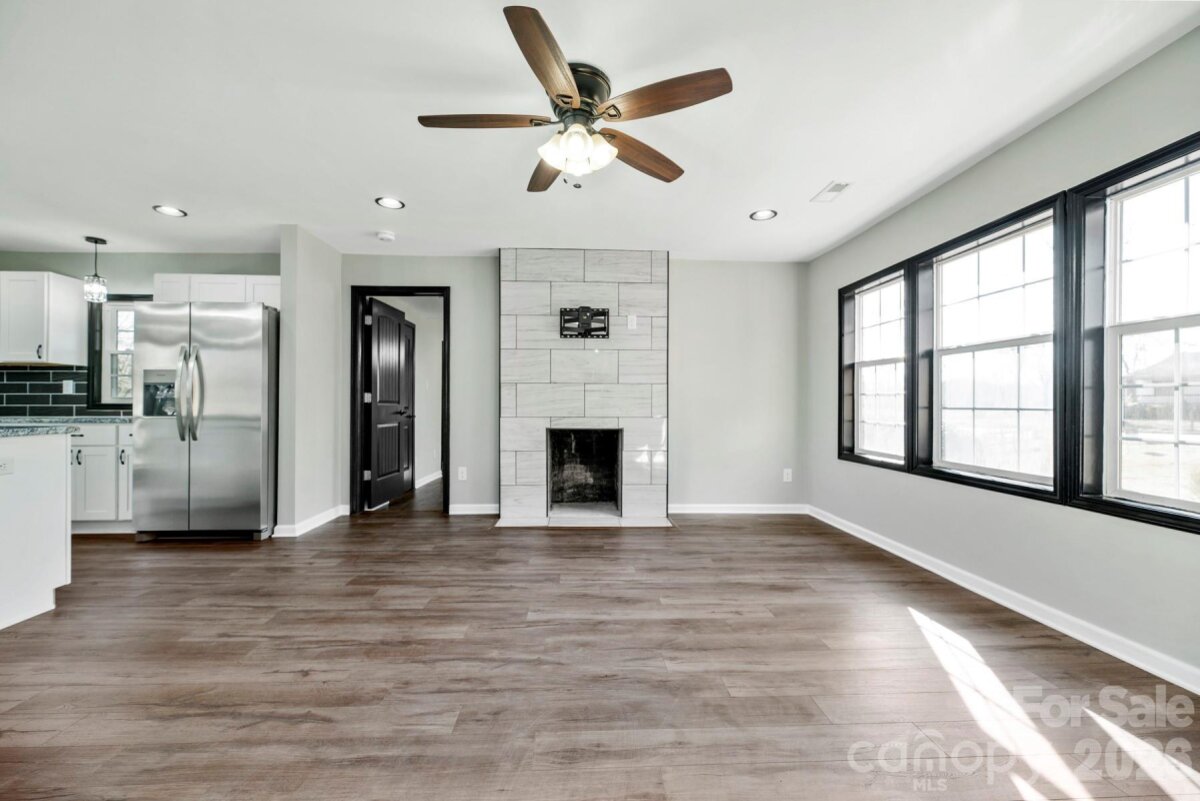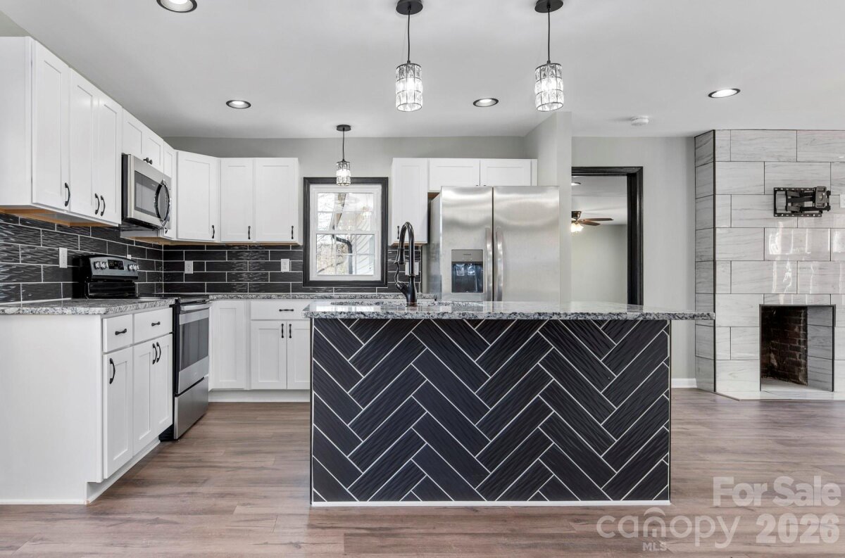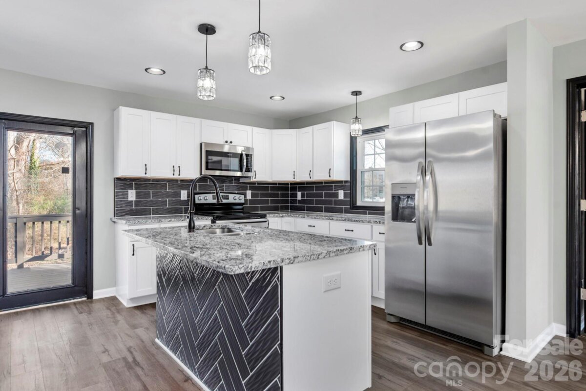 Welcome home to this beautifully updated 3-bedroom, 2-bath ranch in the heart of Statesville—where modern design meets everyday comfort. Conveniently located near I-77, I-40, and Hwy 70, this home makes commuting a breeze while still offering a quiet place to unwind. Step inside to a stunning designer kitchen featuring crisp white shaker cabinets, a bold blue island, granite countertops, stainless steel appliances, and a stylish herringbone tile backsplash—perfect for both daily living and entertaining. The bathrooms feel like a retreat, with upscale finishes, a double vanity in the primary suite, and a sleek walk-in shower for guests. Enjoy evenings on the spacious deck or host gatherings on the concrete patio. With major updates already done—including roof, HVAC, flooring, electrical, plumbing, and water heater, this home is truly move-in ready.