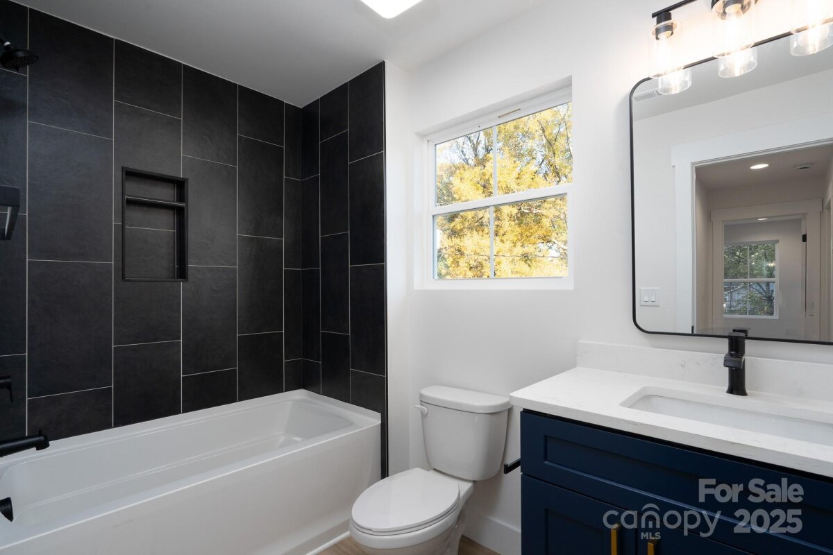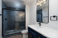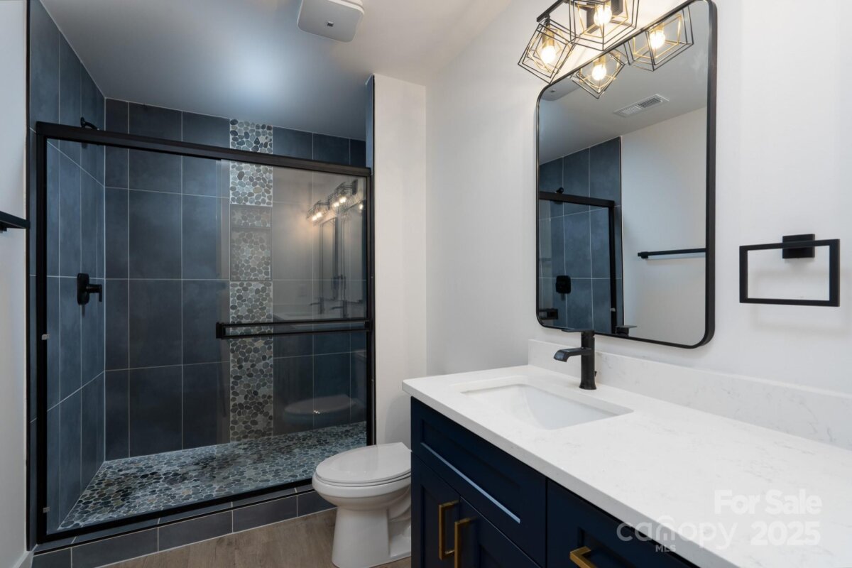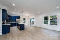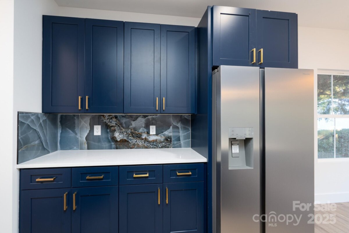 Modern 3BR/2.5BA home with open floor plan featuring a spacious kitchen with large island, custom blue cabinets, and tile backsplash. Main level laundry. Upstairs offers a large primary suite with walk-in closet and custom tiled shower, plus two additional bedrooms and full bath. Stylish design and move-in ready!