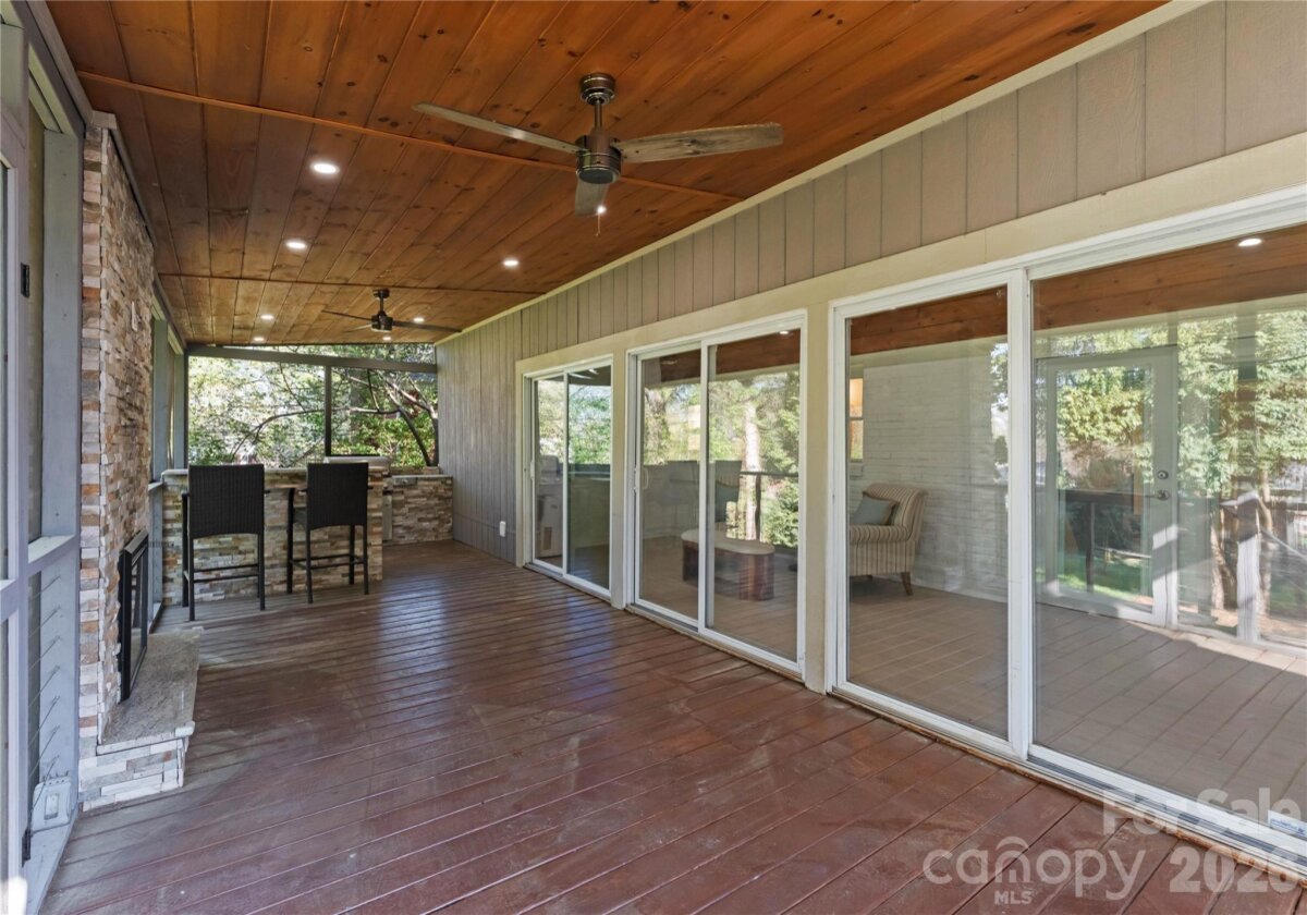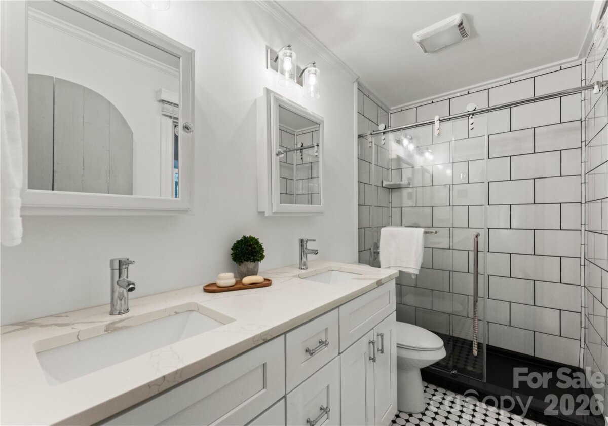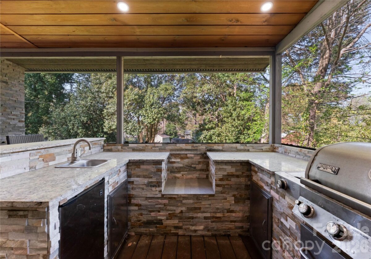 Discover refined living in this luxuriously renovated ranch-style home situated in the highly sought-after Madison Park neighborhood featuring a RARE sunroom AND screened porch! This elegant residence offers three spacious bedrooms, including a serene primary suite featuring a spa-inspired ensuite, dual quartz vanities, and an oversized CUSTOM closet. The two secondary bedrooms share a beautifully designed guest bathroom showcasing a tiled tub-and-shower combination with stylish shiplap accents. The designer kitchen is the true heart of the home, boasting sleek quartz countertops, a classic subway tile backsplash, premium stainless steel appliances, and a breakfast bar that flows seamlessly into the dining area and living room—perfect for open-concept entertaining. Multiple spaces invite relaxation and gatherings, from the stylish living room with a gas-log fireplace to the bright sunroom and screened porch complete with an additional fireplace. The screened porch extends your living space with a fully equipped outdoor kitchen featuring a built-in grill, beverage refrigerator, sink, and bar area, all overlooking the fenced backyard designed for effortless entertaining and evenings gathered around the firepit under the stars. Additional highlights include a private laundry room and a well-appointed backyard shed. Ideally located near Seneca Place, Tyvola Road, South Boulevard, SouthPark, Park Road Shopping Center, and the Light Rail, this home combines luxury, comfort, and convenience in one of Charlotte’s most desirable settings.