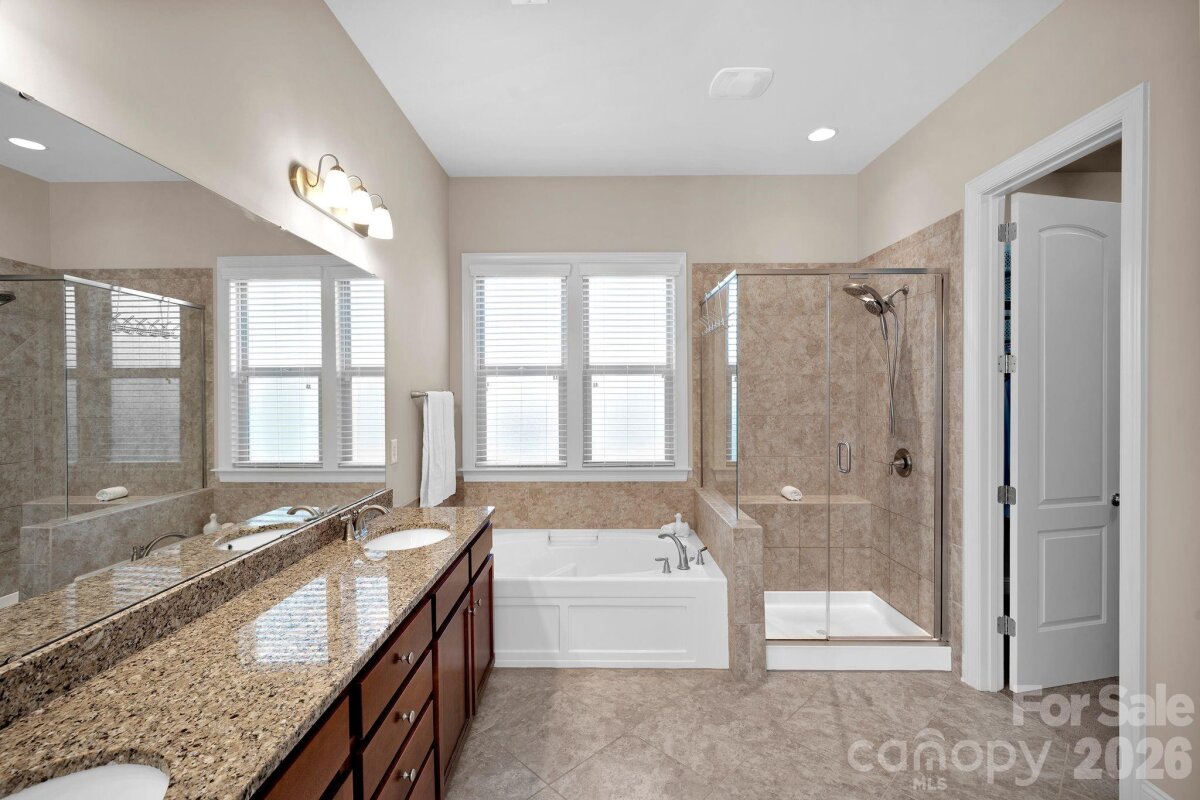 Welcome home to these 3 bed, two bath home in the desirable Enclaves at Crismark. You will first be greeted on the charming front porch. Step inside to soaring 10-foot ceilings, graceful arched entryways, and rich wood floors that flow seamlessly through open concept home. The formal dining room is the perfect space for gatherings. A versatile study/flex room is perfect for a home office or playroom. The gourmet kitchen boasts a massive island ideal for entertaining, and a generous walk-in pantry keeps everything organized. Relax by the fireplace in the adjacent family room. Step outside to the covered deck overlooking a beautiful tree lined and fenced back yard- your own private oasis perfect for morning coffee, evening dinners or weekend entertaining. Retreat to the luxurious primary suite, featuring an elegant tray ceiling, a spa-inspired bath with both a soaking tub and walk-in shower, and a large walk-in closet. Two additional bedrooms and a second full bath offer comfort and flexibility for family or guests. The dedicated laundry room includes a sink and oversized closet, providing exceptional storage. A showstopping 798 sq. ft. three-car garage — a rare find that offers abundant space for vehicles, a workshop, hobby room, or whatever your passion demands. The community offers resort-style living with a clubhouse, swimming pool, tennis and pickleball courts, and scenic walking trails — everything you need right outside your door. Families will love the desirable union county schools. Easy access to I-485 puts shopping, dining, and the greater Charlotte metro within minutes. Outdoor enthusiasts will love being close to Crooked Creek Park and Lake Park, both offering trails and green space for all ages. Golf lovers are spoiled for choice with many courses just minutes away. With 3 bedrooms, 2 full baths, a flex room, premium finishes at every turn, top-rated schools, and a community and location that truly have it all — this home is the complete package. Schedule your private showing today!