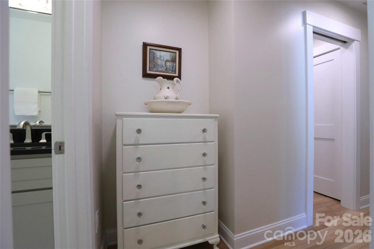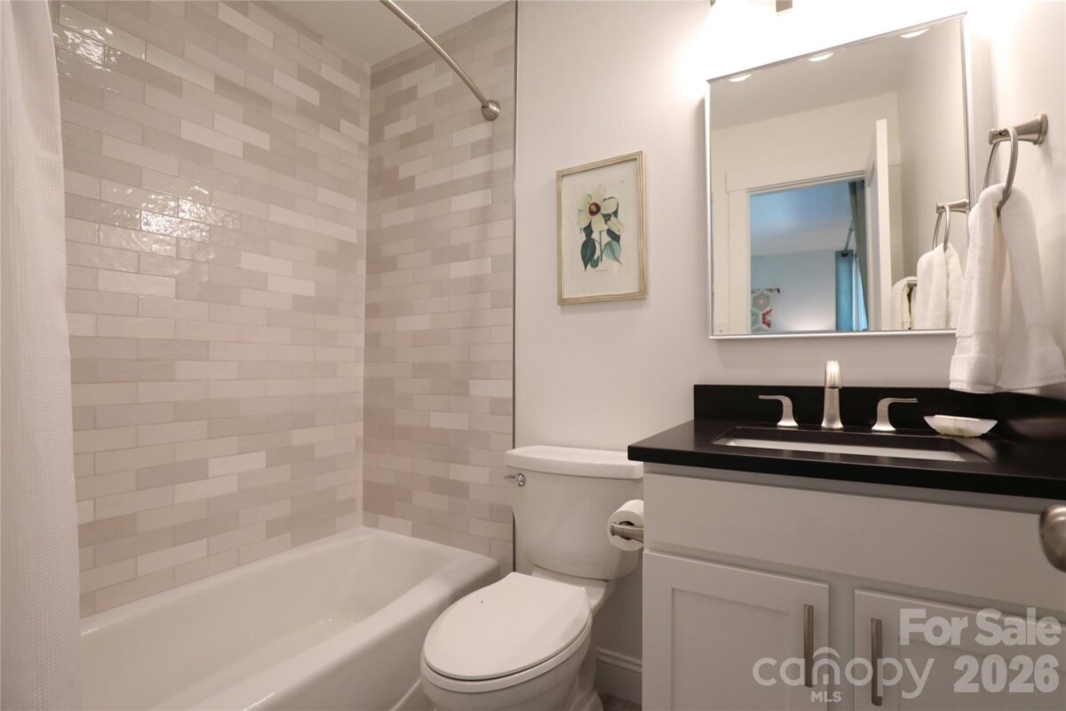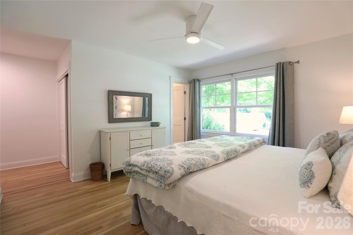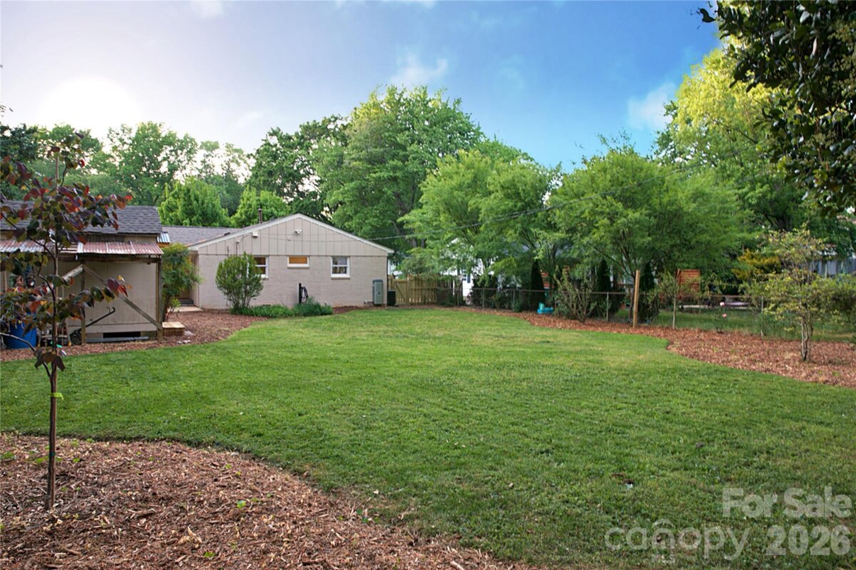 Beautiful custom renovation by Shank Building and Design of this 4 bedroom PLUS office home in Windsor Park. Full Brick with Hardie board-and-batten siding accent! Redesigned with custom features and upscale finishes. Gourmet kitchen layout remodeled to an open and inviting flow with the living room including upgraded cabinetry, gorgeous quartzite stone counters, large island with microwave, tile backsplash, new stainless appliances including refrigerator, induction range and custom vent hood. Drop zone off kitchen leads to laundry, fourth bedroom, and office space - perfect for work-from-home. Primary suite with renovated primary bath including new tile flooring, vanity, fixtures, and tile surround. Hall bath also renovated with new tile flooring, new vanity, new fixtures, and beautiful tile surround. Other upgrades include all new energy efficient windows, interior doors, lighting, breakers/electrical devices, refinished hardwood flooring throughout bedrooms and living spaces (2025) and new carpet in 4th bedroom and office (2026). Meticulously landscaped with perennials and ornamental trees designed to provide year-round color and surrounded in mature privacy! Shed with attached covered area in level, fully fenced rear yard. AT&T Fiber Internet available! Tankless gas water heater - 2025, AC replaced 2025 and Furnace unit refurbished with lower half of unit replaced in 2025. Exterior painted 2025. Roof replaced December 2022. Upgraded concrete driveway with expanded parking. All entry steps upgraded with stone coping. Crawlspace has new french drain with sump pump and 20 mil vapor barrier with overlapping and taped seams, 2025. Centrally located providing close proximity to ample options for shopping, restaurants and more -- Just 3.5 miles to Plaza Midwood and 5.5 miles to Uptown Charlotte. Just 13 miles to CLT Douglas Airport! Walk to Windsor Park Elementary! FLOOR PLAN and SURVEY in attachments!