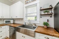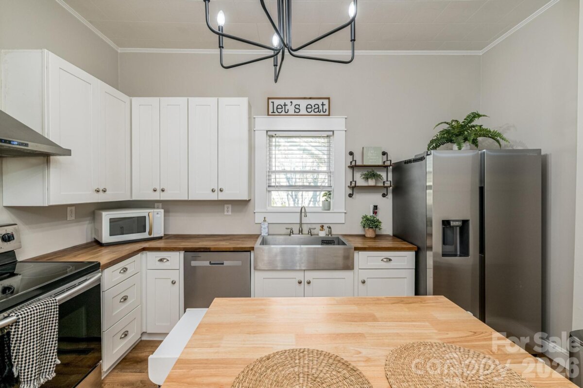 Welcome to 510 Cedar Street, just minutes from the heart of Downtown Troutman. Relax on the charming covered front porch designed perfectly for morning coffee or evening unwinding. This beautifully renovated (2024) 2-bedroom, 2-bath home is truly move-in ready. Step inside to a bright and spacious great room filled with natural light, creating a warm and welcoming atmosphere. The large eat-in kitchen features stylish shaker cabinets, butcher block countertops, stainless steel appliances, and a versatile removable island ideal for both everyday living and entertaining. Primary and bedroom are generously sized offering ample closet space. The spa-like bathroom boasts an oversized vanity and a convenient linen closet for extra storage. A roomy laundry area with abundant cabinetry adds everyday convenience. Out back, enjoy your private deck overlooking a fenced yard—perfect for gardening, gatherings, or simply relaxing with added privacy. An outbuilding provides excellent storage or workspace for outdoor enthusiasts. Don’t miss your chance to own this thoughtfully updated home in a convenient and desirable location. Welcome home!
