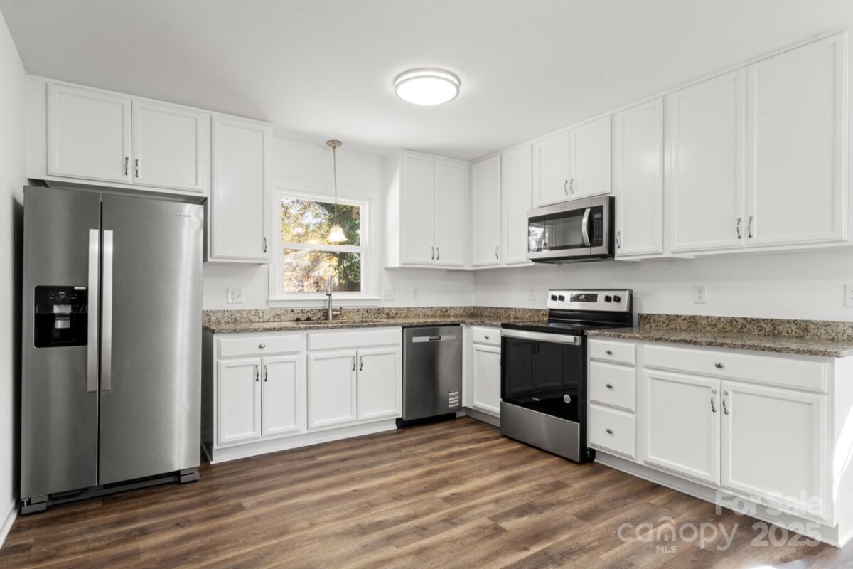 CUTE all brick ranch newly refreshed and ready for you to make your home! Walk into this beautiful home onto LVP Flooring throughout! Great Room hosts stunning Fireplace and modern ceiling fan! Kitchen is AWESOME w/white shaker cabinets, granite countertops, and SS Appliances! Enjoy many meals in the spacious dining room. Primary Suite is a GREAT size, hosting a ceiling fan and bathroom w/single granite vanity and tub/shower combo. 3 guest beds are all generous in space and size and share the additional full bath w/single granite vanity & tub/shower combo. This home also features a long driveway that extends into the fully fenced back yard! Additional storage on the back of the home and with the shed too! So much to see in this home, take a look before it gets gone!
