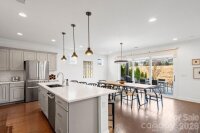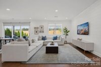 Enjoy wonderful sunset greenway views in this truly custom Liberty plan that has been thoughtfully designed with a meticulous attention to detail, barely lived in, and offers many different living configurations. Entry foyer with ship-lap accent walls leads you into this open-concept residence that has an amazing use of function & space plus decorator colors, lighting & finishes. A well appointed kitchen anchors the main living area & includes SS GE Cafe appliances, solid surface countertops, tile backsplash, Bosch refrigerator & cabinets w/soft close drawers. Dining area w/wall of glass opens and flows seamlessly to the covered Lanai & extended paver patio with privacy landscaping expanding in and outdoor entertaining areas. Great room offers electric shades for added privacy. Office/flex space features glass doors creating a serene setting. A substantial primary suite completes this home w/dual sink vanity, tile floors and shower plus a generous custom walk-in closet. Low maintenance wood & tile floors throughout. Additional bedroom with ensuite bath and walk in closet. Third bedroom with adjacent bath and central laundry room includes washing machine and dryer. Water filtration system. Oversized 2 car garage with golf cart storage. Trilogy Membership includes Freedom Boat Club on Lake Norman plus award winning amenities