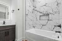 Modern new construction in a prime Kannapolis location! This home features an open layout centered around a waterfall-edge kitchen island, sleek cabinetry, and modern lighting. LVP flooring runs throughout the home, creating a clean, low-maintenance finish from room to room. The living room includes a fireplace, and all appliances convey, making this home move-in ready! The primary suite offers a floor-to-ceiling tiled walk-in shower, LED mirrors, accent walls, and a spacious walk-in closet — all designed with a modern, elevated feel. Located approximately half a mile from downtown Kannapolis and everything it offers, including The GEM Theatre, Atrium Health Ballpark, Veterans Park, along with local restaurants, coffee shops, and entertainment venues. New construction in this central location is a rare opportunity at this price point. Come tour now!