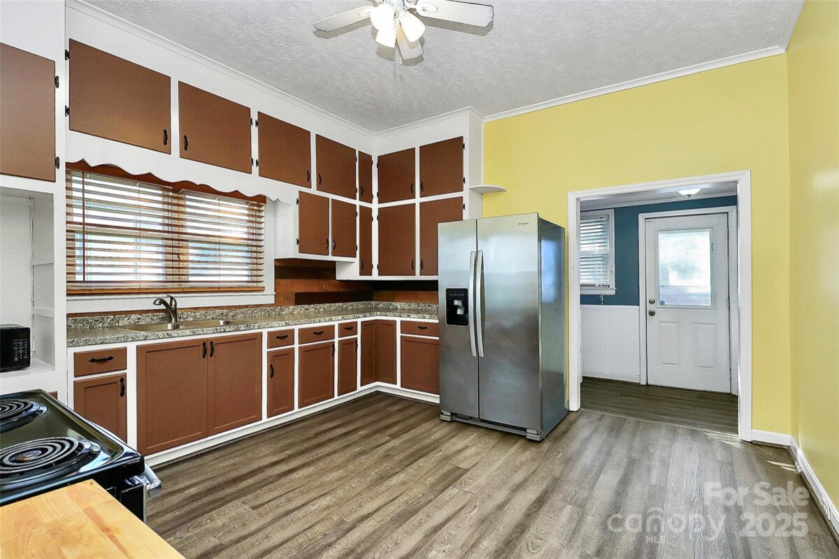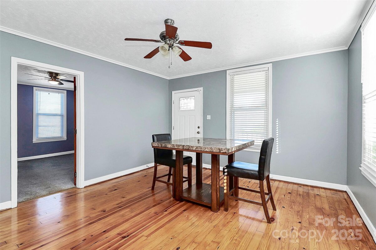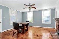 2 bedroom home on corner lot with fenced yard. Large eat in kitchen, living room with gas fireplace, and two nice size bedrooms. Rocking chair front porch and fenced yard with storage shed. Carport can accommodate 2 cars in the driveway.