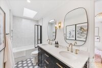 Stunning six-bedroom, 4½-bath home in desirable and established Winding Brook, tucked away on a quiet cul-de-sac with no through traffic. Featuring a private pool and an exceptional layout designed for comfortable everyday living and effortless entertaining. Enjoy the privacy, convenience, and true sense of community — a place where kids ride bikes in the street and neighbors feel like friends. Thoroughly renovated and beautifully maintained, this residence blends timeless elegance with modern comfort in every space, complemented by high-end designer chandeliers and luxury-grade fixtures throughout. The bright, open-concept Kitchen is a showstopper, featuring custom cabinetry, quartzite countertops, double large center islands, walk-in pantry, and Wolf, Sub-zero and Miele appliances. The Kitchen flows seamlessly into the Great Room and Sunroom with hardwood floors throughout the main level, creating the perfect layout for both everyday living and entertaining. The wall of windows overlooking the private backyard and pool wash the main living area with natural light and creates a space you never want to leave. The spacious Great Room has a gas fireplace with custom mantle, and opens through French doors into the spacious, light-filled drawing room. Across the Foyer, the Music Room could also be used as a formal Dining Room opening to the Kitchen. The Bonus Room on the main level features built-ins and large walk-in closet for ample storage and boasts a gas fireplace. The Laundry Room is exceptionally large and well-appointed with custom cabinets and lockers that are both beautiful and functional. Upstairs, the spacious Primary suite includes a luxurious bathroom and two grand-scale walk-in dressing rooms. Secondary bedrooms with hardwood floors and large closets with built in desks, share a modern full bathroom. Additional bedrooms are both generously sized and share a fresh bath with a shower tub combination. On the lowest level is the sixth bedroom that could be used as an exercise room with attached inviting and spacious full bathroom. The downstairs living area has the third gas fireplace and is spacious and walks out to the beautiful covered loggia. The private backyard oasis features a sparkling heated in-ground liner pool, expansive patio space, and multiple areas for lounging and dining. The covered terrace provides year-round enjoyment and effortless indoor-outdoor living. Side load two car garage with storage room caps off this exquisite home overflowing with charm, elegance and functionality.
