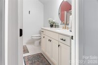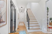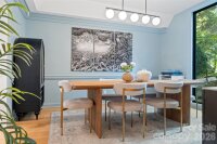 Cotswold designer retreat on a private 0.62-acre wooded lot. No HOA. Private wraparound driveway leading to side. This home is ideally located less than a mile to Cotswold Village, the farmers market, parks, the planned McMullen Creek Greenway, and only minutes to SouthPark, Uptown, hospitals, and top schools. Scandinavian-inspired, the home is light-filled with floor-to-ceiling picture windows, living-room skylights, vaulted ceiling, and an open floor plan. Over $250,000 in renovations between 2020 and 2025 include white-oak floors, floating built-ins, stone waterfall counters, integrated-panel appliances, and a modern gas fireplace with granite hearth, new windows and exterior doors (2020–2021), new hardwoods (2022), new interior doors and whole-house paint (2023), main-house garage door (2024), new HVAC duct work (2025), and an encapsulated crawlspace with dehumidifier and UV purification. The beautiful chef’s kitchen was updated in 2022 and fitted with Wolf dual-fuel range with griddle, Wolf microwave, Sub-Zero refrigerator and freezer, Cove dishwasher, and walk-in pantry with wine fridge. California Closets in bedrooms and pantry/mudroom with a pocket door. You are welcomed by a large open kitchen and great room. The stunning main-level primary suite offers two walk-in closets, soaking tub, walk-in shower, and double vanities. Two additional bedrooms are on the main level. Upstairs is a fourth bedroom, full bath, and large bonus room with a full-wall bookshelf, and walk-in attic. An expansive deck graces the exterior over a tree-canopied backyard. The private wraparound driveway extends to the side street and there is ample parking, including a 1-car attached garage, a 1-car detached garage, and two additional spaces. The detached garage with attic storage has no power but could function as a studio, gym, or office. Throughout the home are bonus smart features and technology: fiber internet, smart thermostats, IoT lighting, Hunter Douglas smart blinds, updated security, and a smart garage door.