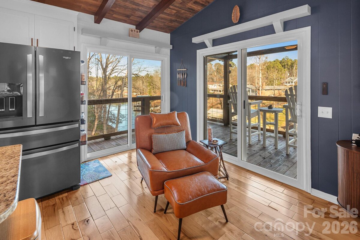 Elevated lake living with immediate income potential! Fully turnkey, short-term rental friendly, and ready to enjoy from day one! Exceptionally renovated and fully furnished lakefront residence on Lake Tillery, set on a ½-acre double lot with approximately 150 feet of pristine shoreline in a deep 12–14 ft cove. This thoughtfully designed home features 2 bedrooms, 2 updated baths, and a versatile bonus room with closet making it ideal for office, guest space, or additional sleeping area. Extensive recent upgrades provide peace of mind and modern comfort, including a new metal roof (2025), updated electrical breaker box (2025), new front door and frame (2025), new sliding doors (2025), and all-new water lines from street to home and exterior spigots (2025). Both bathrooms were updated in 2024, and the kitchen was renovated in 2022 with Whirlpool appliances, all three years old or newer. Outdoor living rivals the interior, featuring a new upper deck (2025), lower deck with stairs to the boathouse (2020), custom fire pit, and a serene zen hammock area overlooking the water! A 150-ft seawall with swell protection (2023) enhances shoreline durability and aesthetics. The wired boathouse includes a pontoon lift and Seadoo drive-up pad, with buried electrical line installed in 2020. Additional structures include a 608 sq ft wired garage with roll-up door and a 346 sq ft wired shed with lean-to. Double driveway offers generous parking for all! Offered completely furnished inside and out including kitchenware, TVs (including garage TV), linens, towels, and décor! Don't miss out on this amazing opportunity!