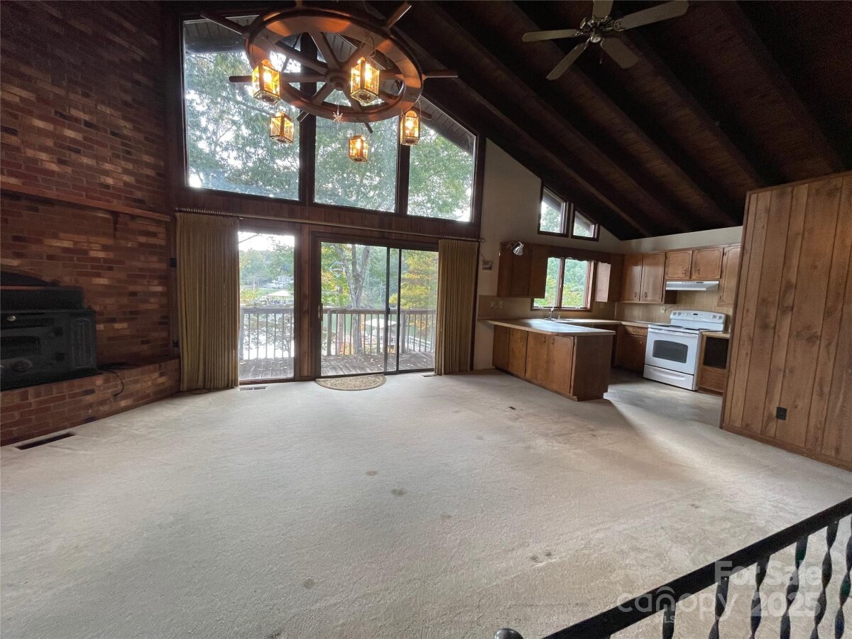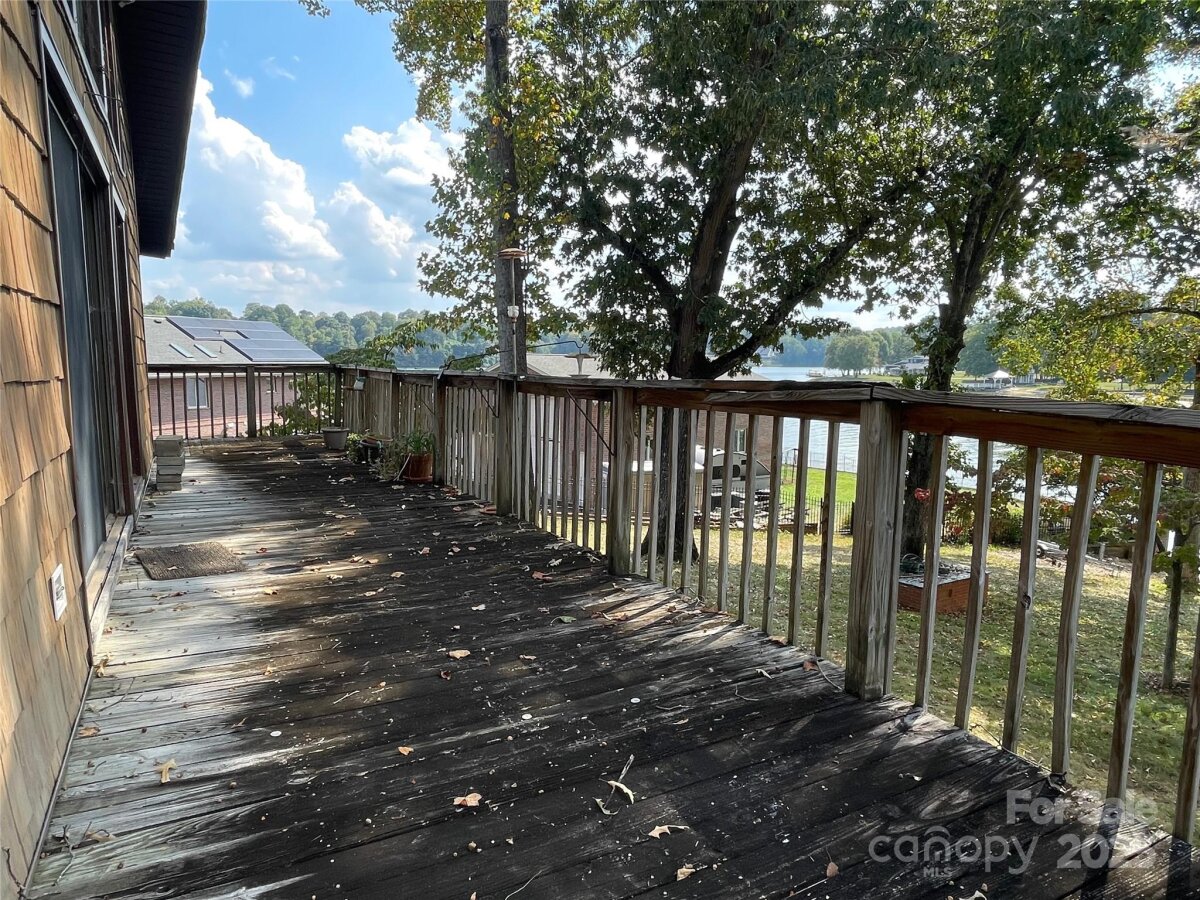 Discover the charm & potential of this 2 bedroom, 2 bathroom lakefront home, perfectly positioned on a gently sloping lot at the mouth of a quiet cove off the main channel of Lake Hickory. This property offers flexibility with no restrictive covenants. Built in '79, this property offers solid bones, stunning views & incredible amenities, ready for your updates & personal vision. Inside, the spacious great room is the heart of the home, featuring expansive windows & sliding glass doors that frame breathtaking lake views. A cozy fireplace adds warmth, while the open flow to the kitchen & open staircase leading to the partially finished basement below creates a bright, connected living space. This basement also offers an unfinished side for storage/utilities. The kitchen is efficient & functional, w/plenty of opportunity for redesign. Step outside to experience lake living at its finest. A screened porch runs the full length of the house, a perfect place to swing, relax & enjoy the views. A huge deck overlooks the water, while your private floating covered dock & boat launch ramp make it easy to get out on the lake. Additional features include a partially finished walk-out basement & a 2-car garage w/an attached workshop/storage/office area (no interior access). Whether you’re looking for a renovation project, a weekend retreat, or a long-term lakefront home, this property offers endless potential in one of Lake Hickory’s most desirable settings. Bring your vision & transform this home into a lakefront getaway of your own!
